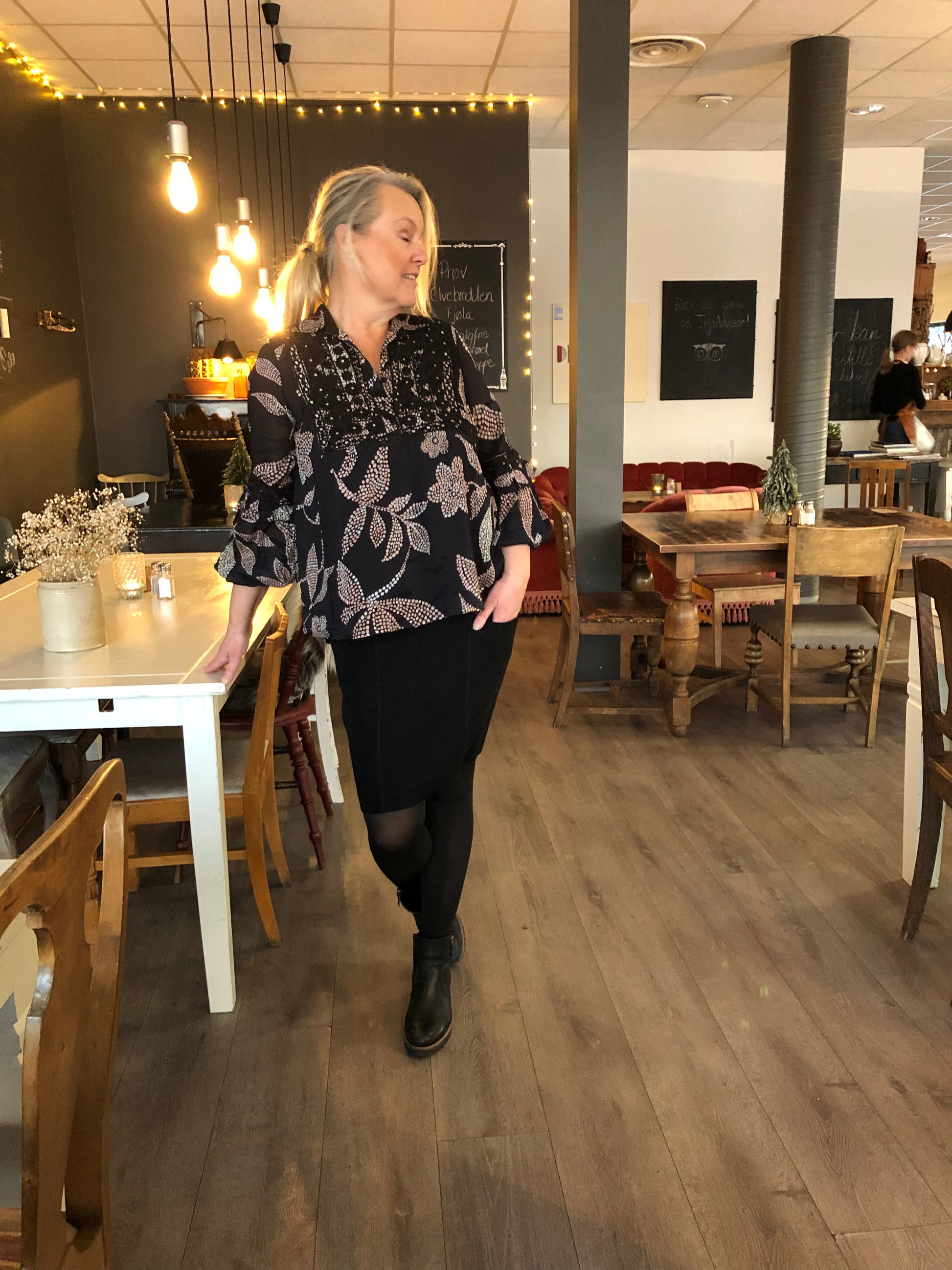 Skjørtet er romslig i størrelsen med tøylig strikk, så du kan gå ned en størrelse.