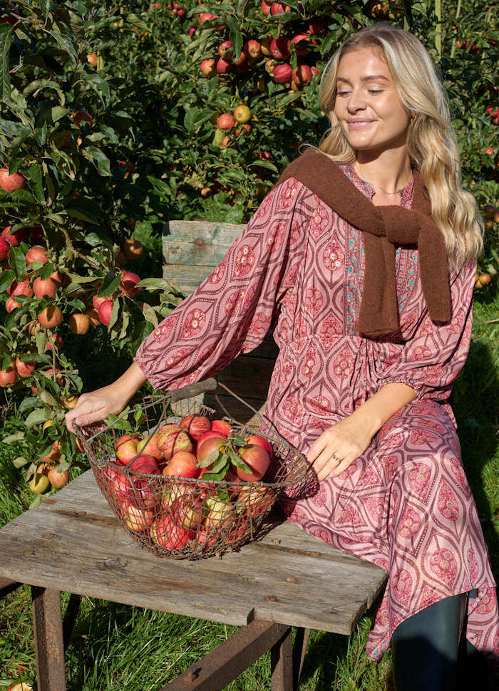Lang kjole fra Black Colour i Pudder farge med flotte nyanser av blomstermønster.