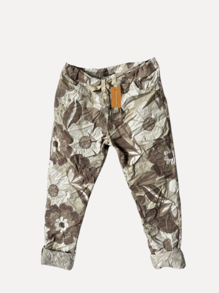 Denne super myke og stretchy buksen i fint mønster med snøring i livet, er både trendy og super komfortabel!