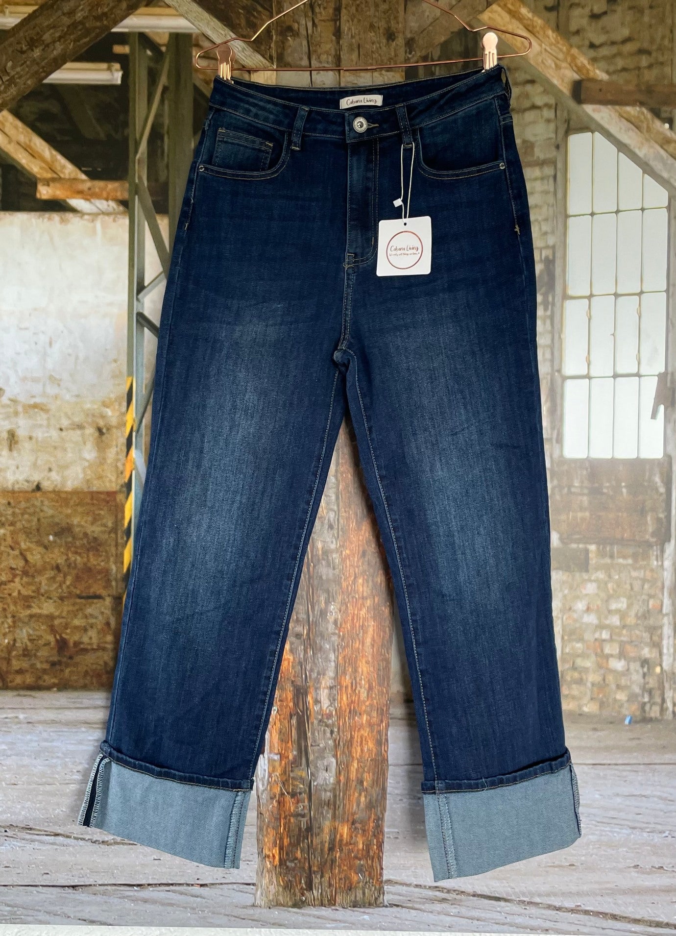 Supertøffe Jeans i boyfriendstil, rette ben, lommer og oppbrett nederst med mulighet til å brette opp og ned buksen. Lukkes med glidelås.