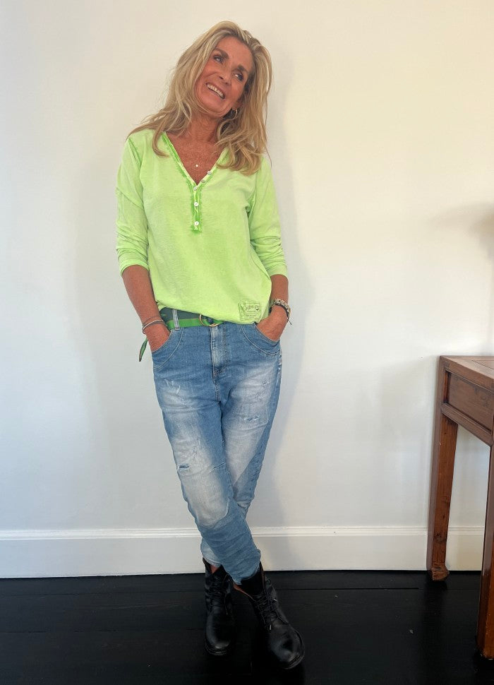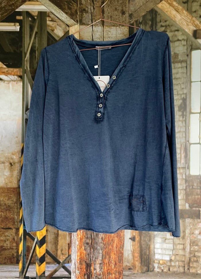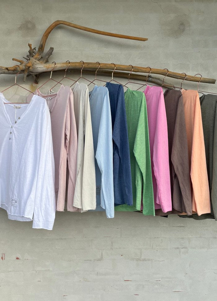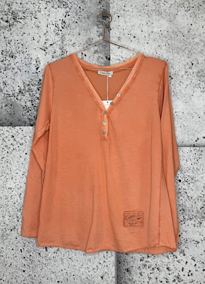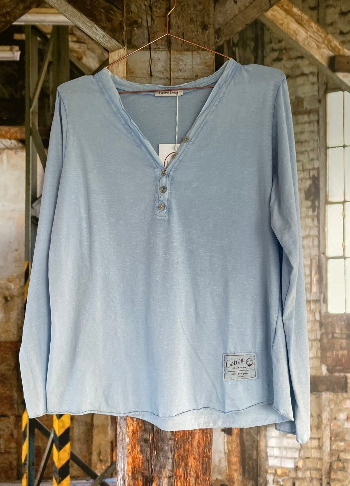 Lekker lett bomullsgenser med V-utskjæring og knapper.