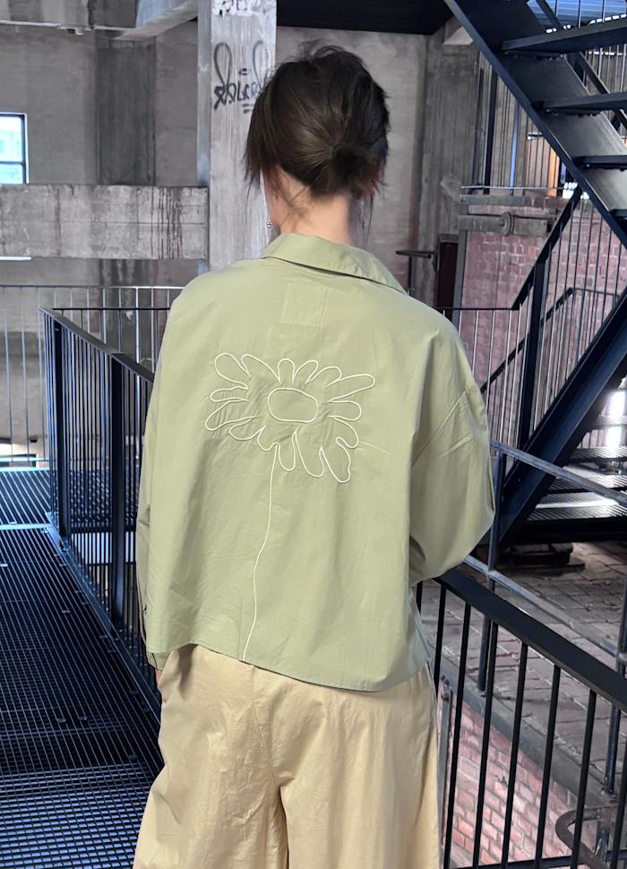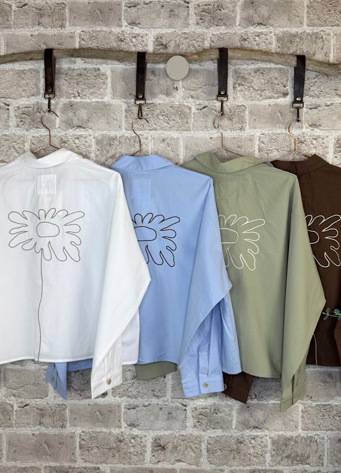 Søt vår-skjorte fra Cabana Living 🌸 Skjorten er en kort modell med brodert blomst på ryggen. Super kul hverdagsskjorte!