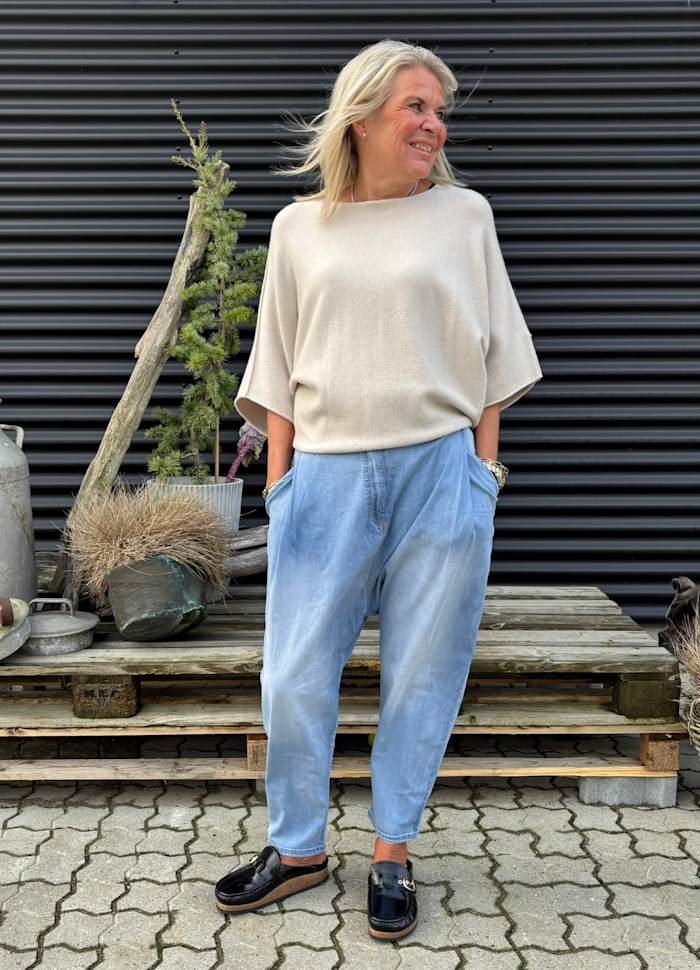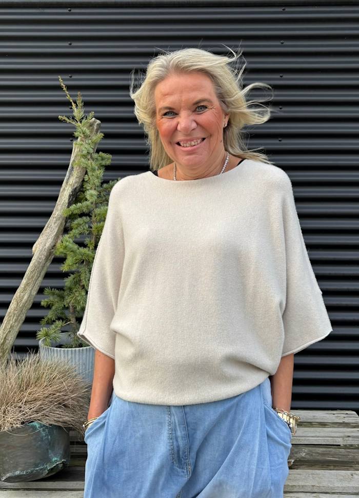 Genser med kort arm i mykeste strikket kvalitet med v/hals