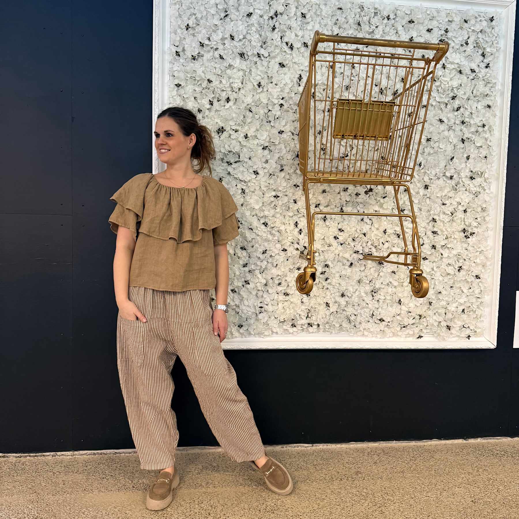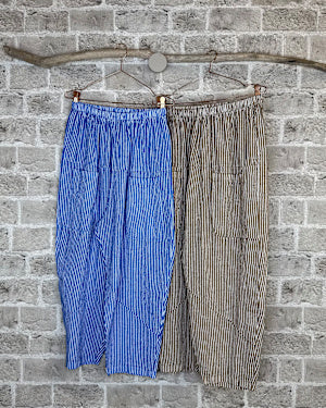 En baggy, litt oversized linbukse med striper fra Cabana Living med to lommer foran. Nydelig kvalitet - 100% lin.