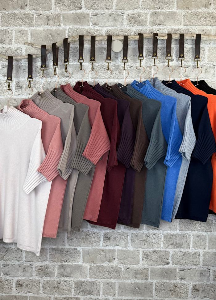 Lekker strikket Genser fra Cabana Living. Strikken fåes i flere farger og har en ribbet turtelneck hals og ribbet 3/4 ermer. Strikken har en lett og løs fit.