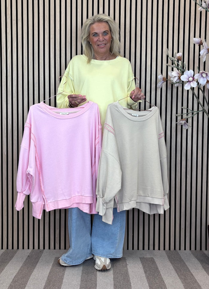 Kul oversize genser med røffe sømmer som en fin detalj og splitter i sidene