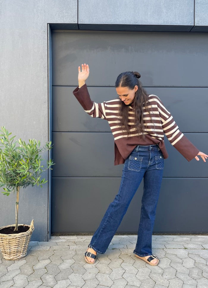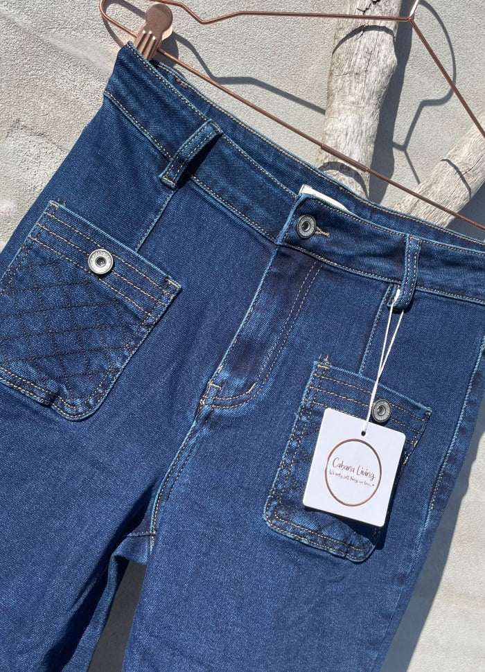 Jeans med rette ben, 2 lommer foran med knappe effekt.