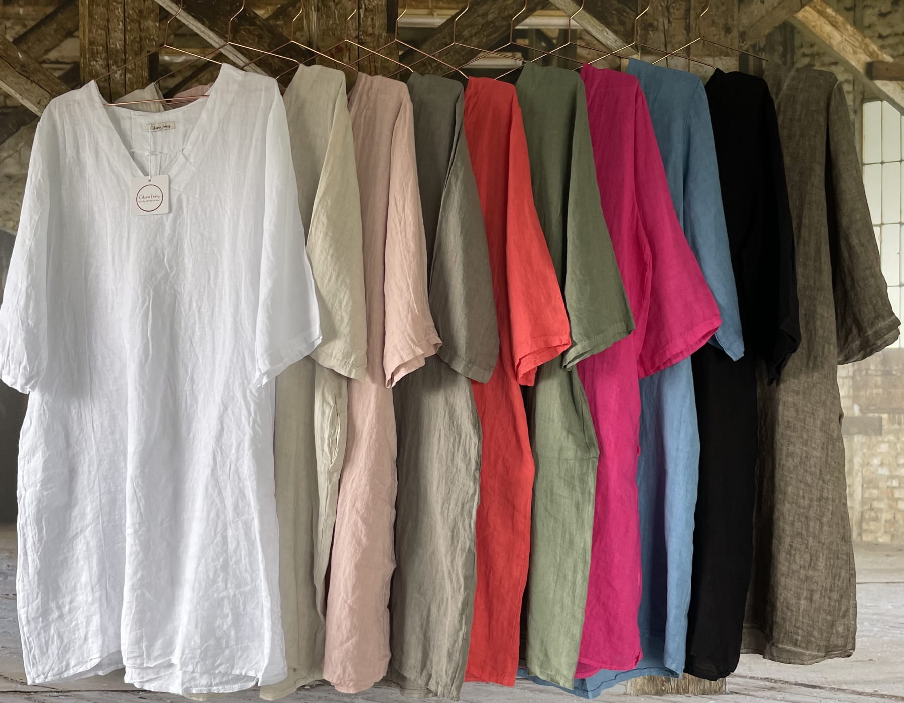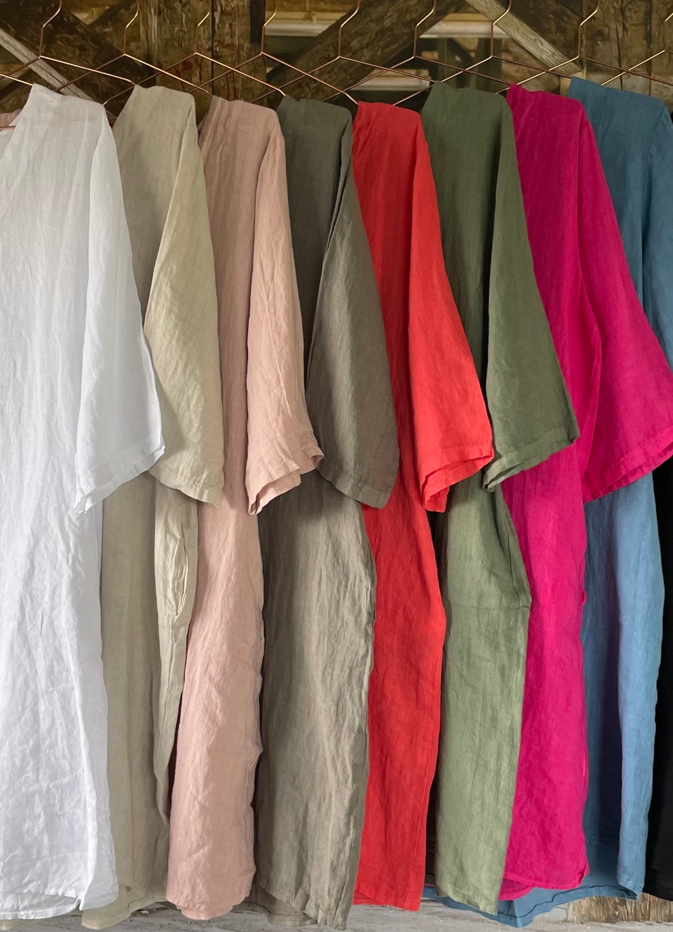 Linkjole / Tunica med V-hals, - kort arm og lommer i siden.