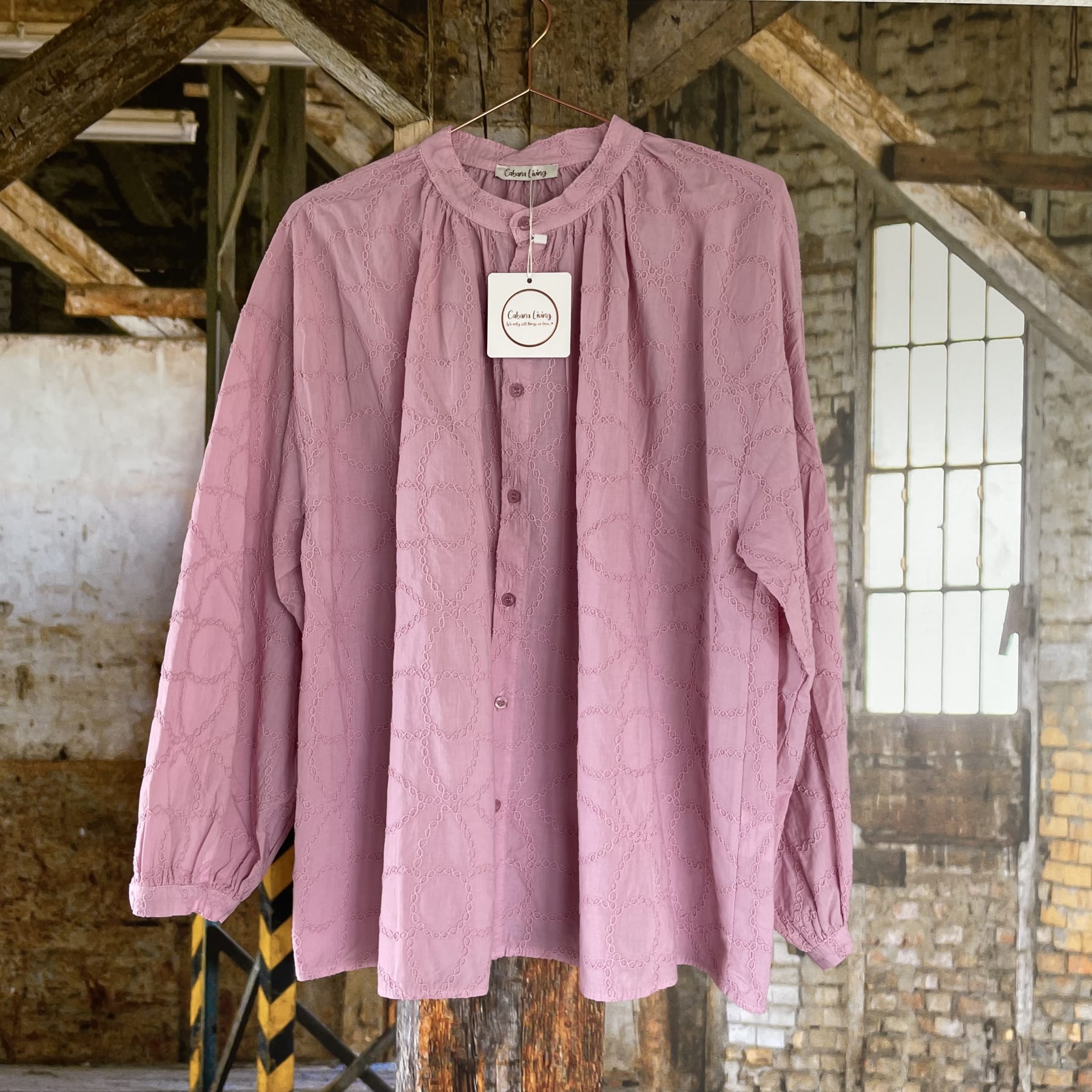 Lekker bomullsbluse fra Cabana Living. Blusen er i størrelse one size, og har en oversized passform. Super lekker til jeans!