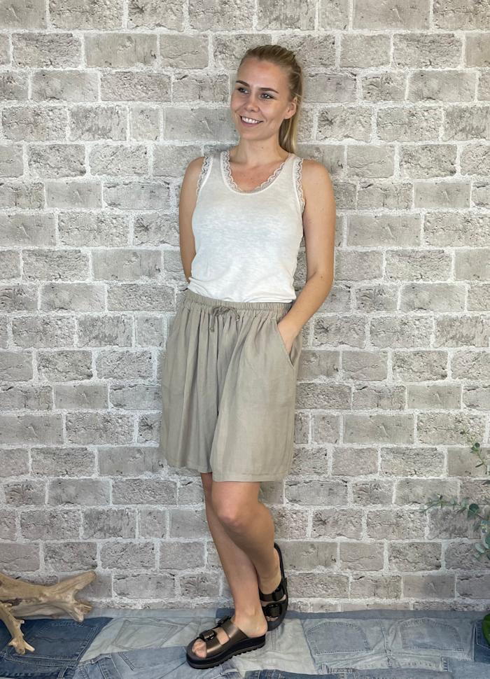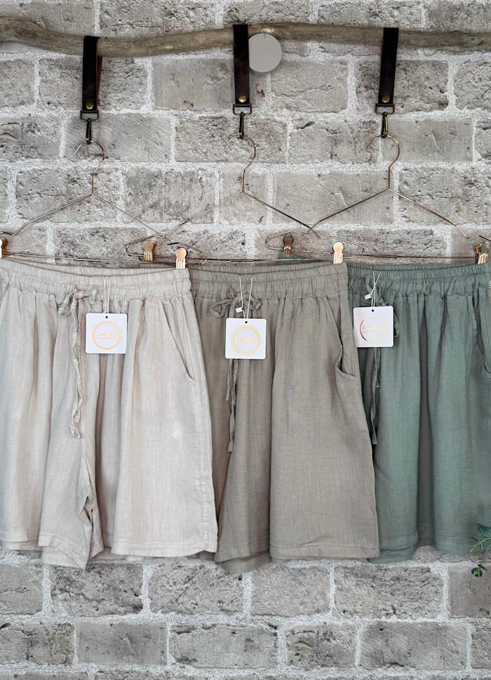 Shorts fra Cabana Living i blanding av Lin og Bomull. Shortsen har myk elastikk i livet og god vidde, som gjør dem behaglig å ha på.