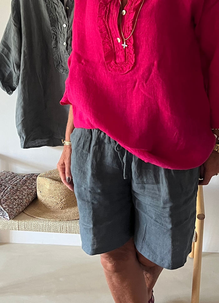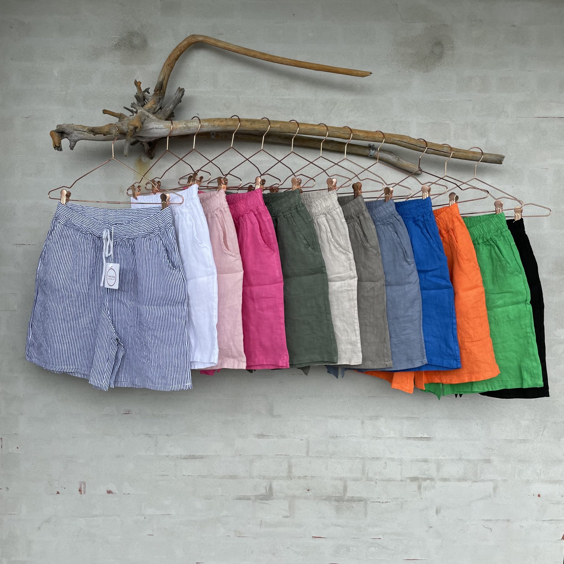 Lin shorts fra Cabana Living. Lommer i sidene og strikk i livet. Fin lengde og behagelig å ha på! Et must å ha med i ferie kofferten.