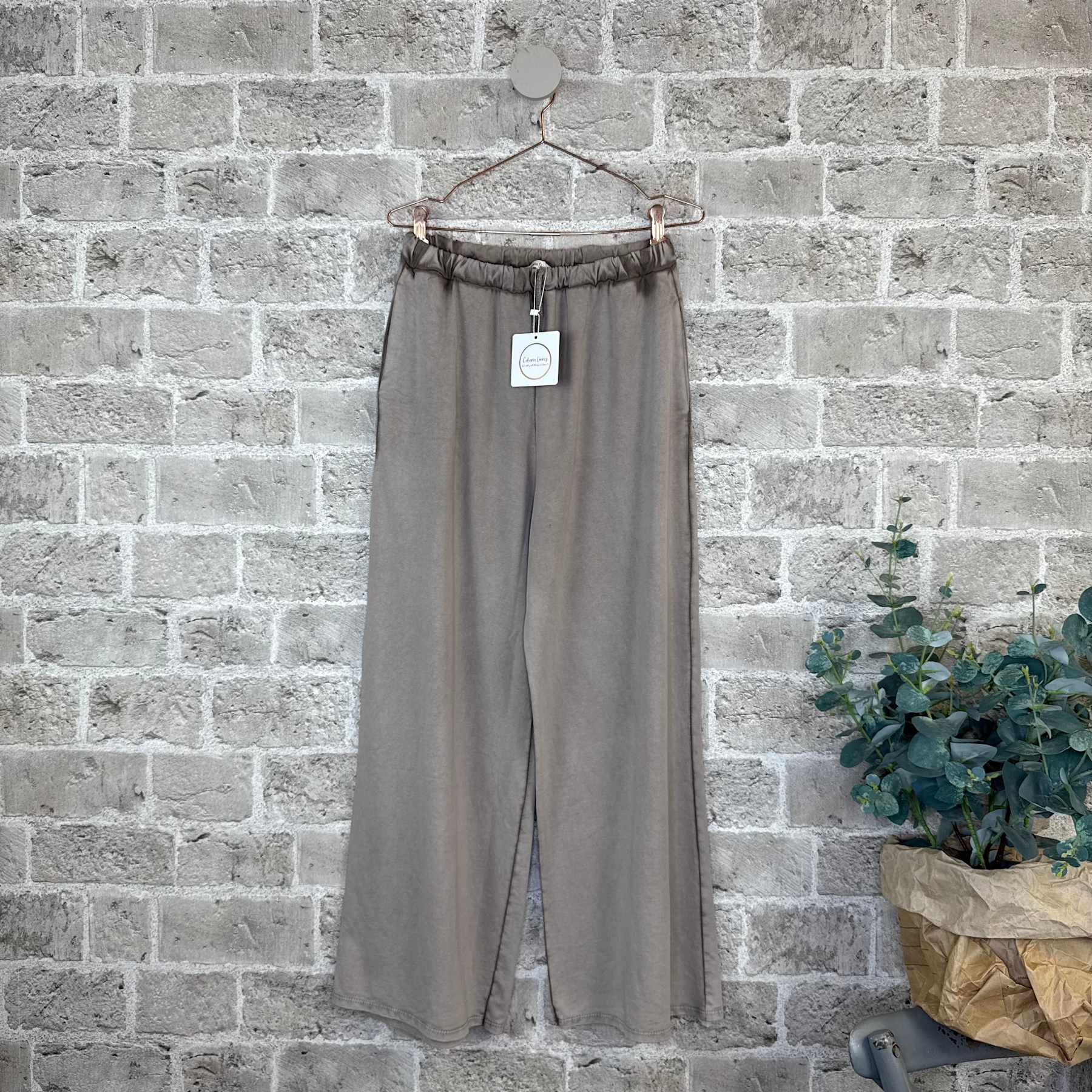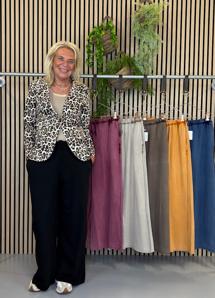 Super komfortabel "kosebukse" i bomull i nydelige høstfarger! Vid i modellen i kul vasket look
