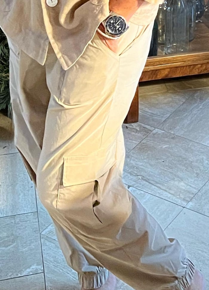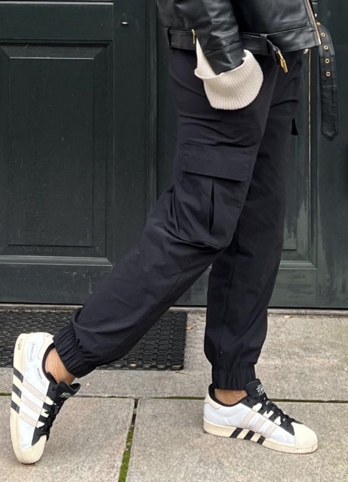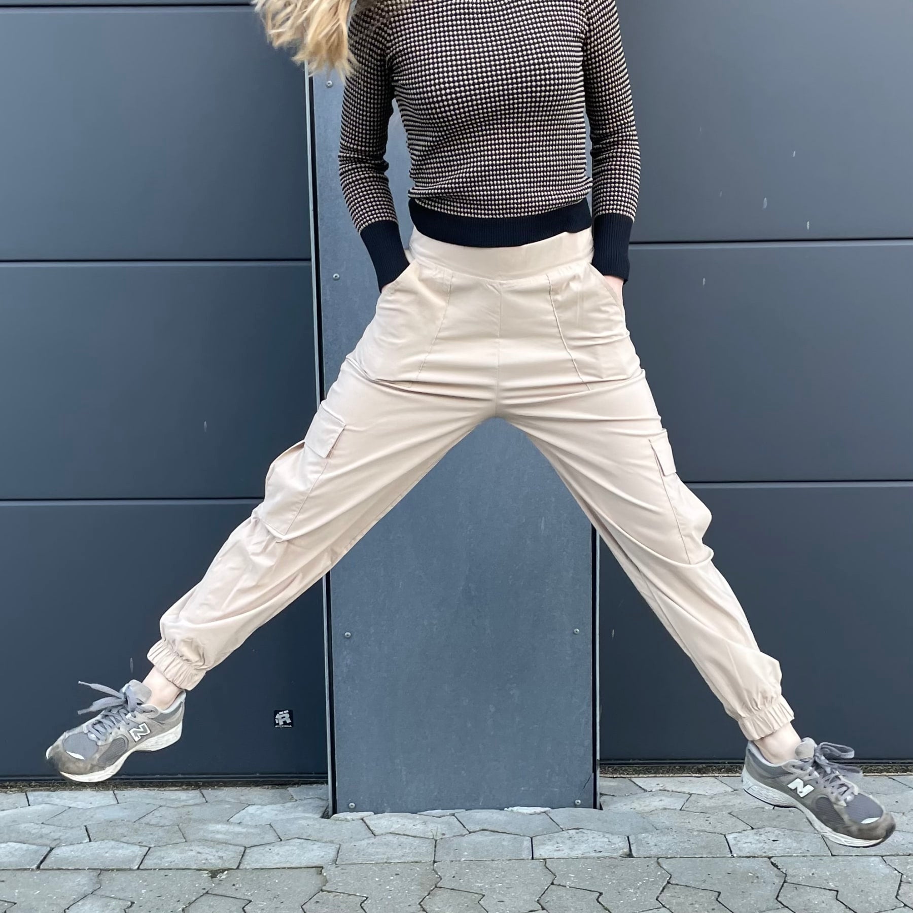 Cool Cargobukse med lommer på lårene samt elastik i livet og i ben.