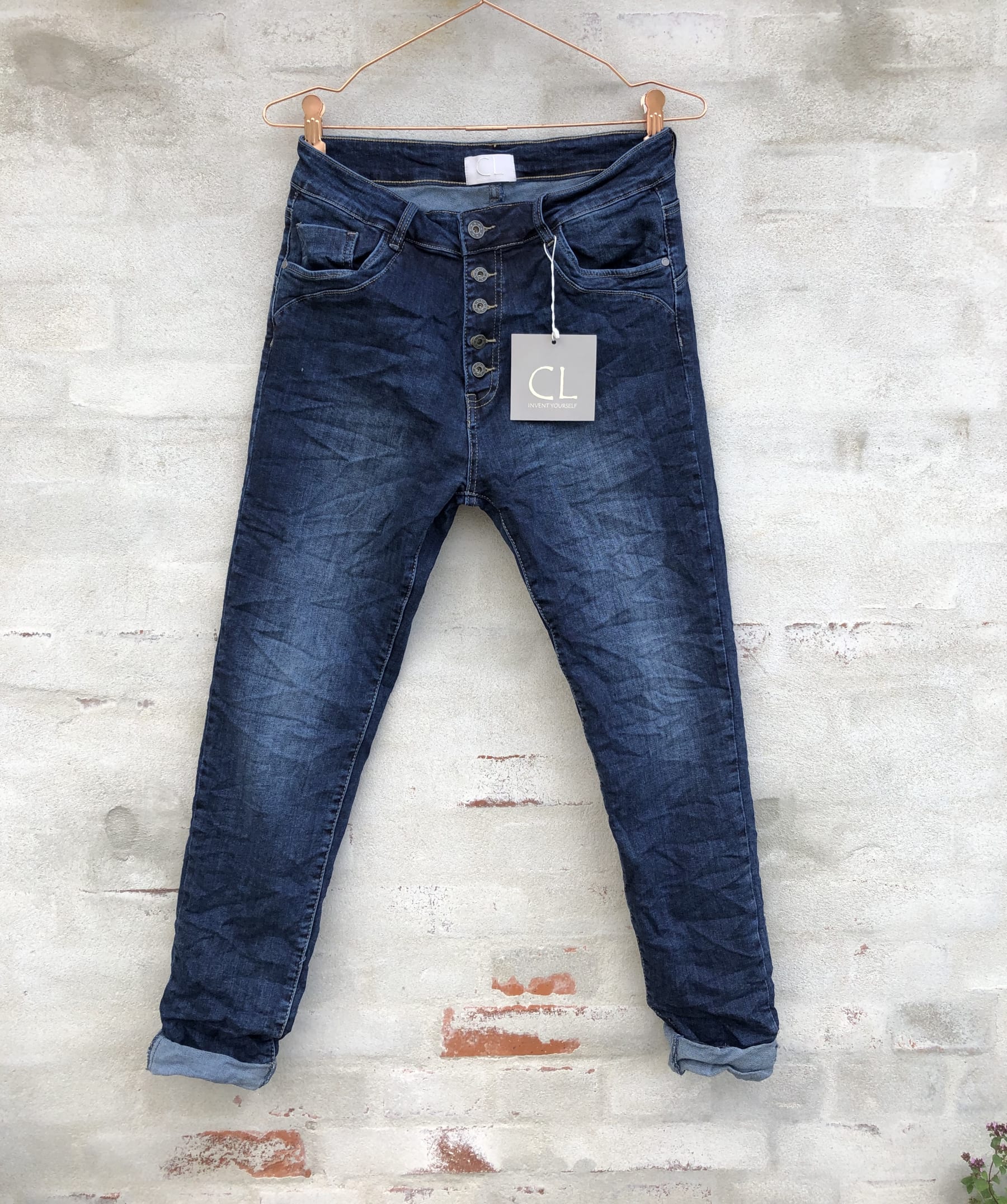 Malou jeans i en ny tøff mørk vask med knappe-lukking.