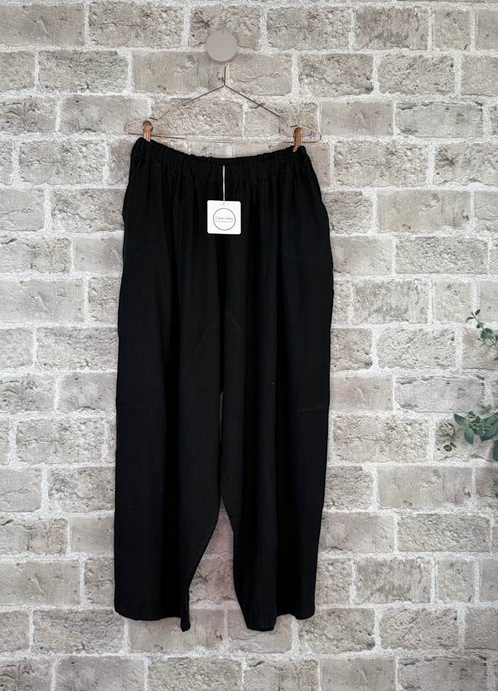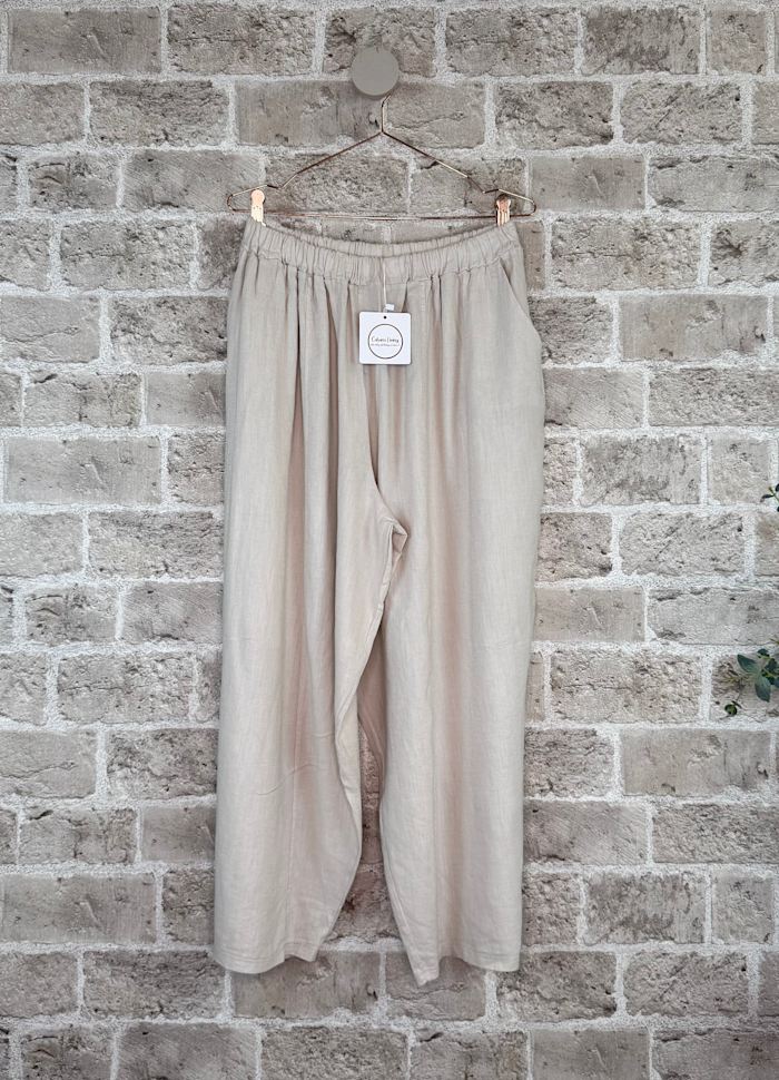 Helig luftig oversize bukse i lin/viskose blanding i 7/8 dels lengde