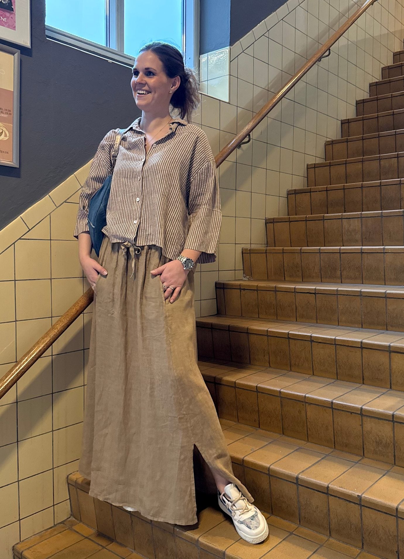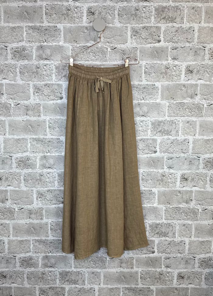 Langt Lin skjørt med strikk i livet