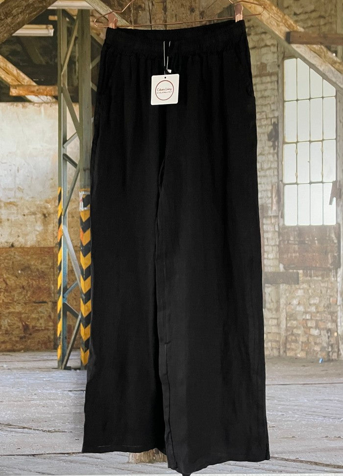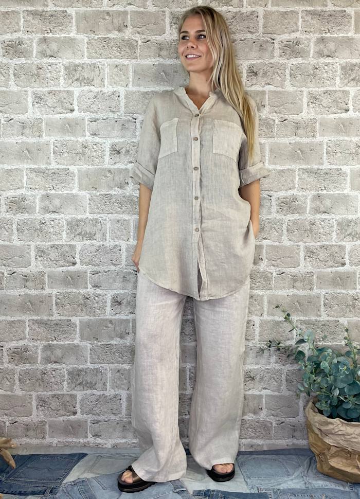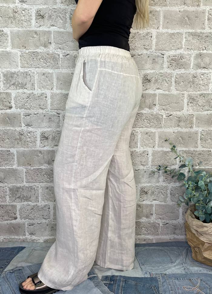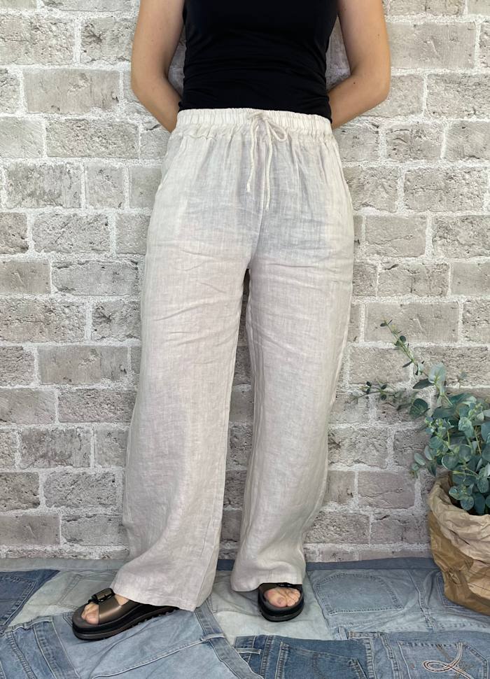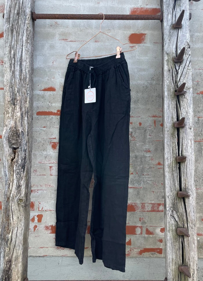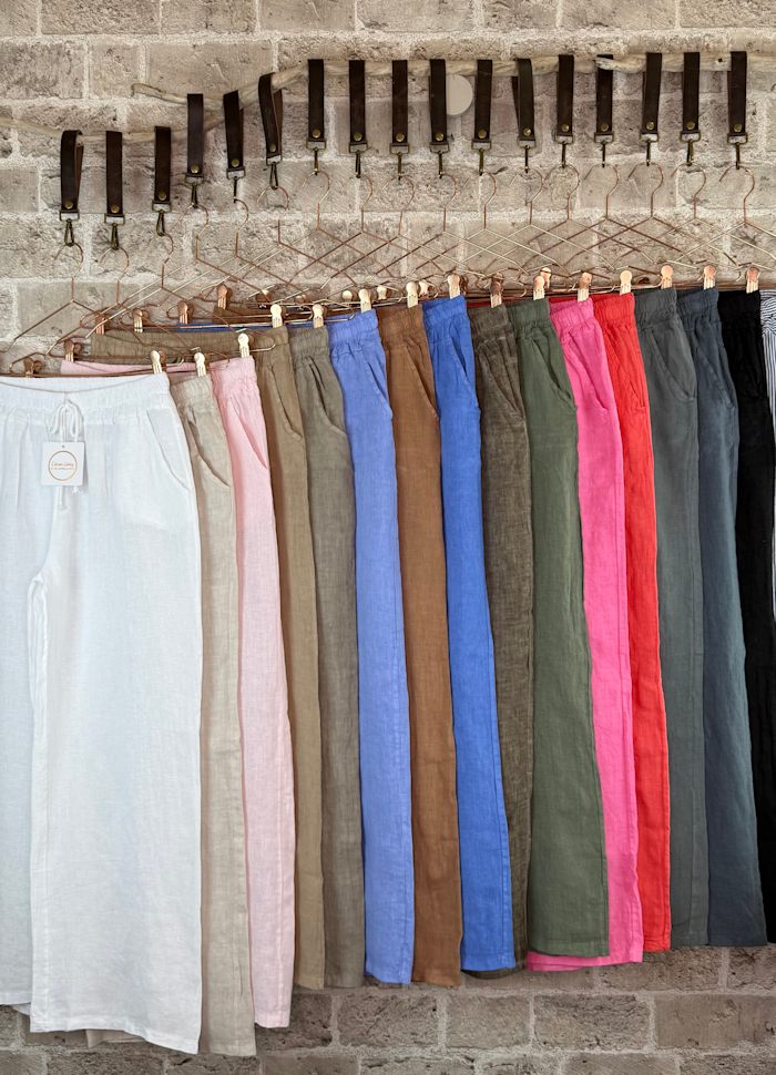 Hva er vel bedre enn en LIN bukse!! Med strikk i livet, vid i modellen med rette ben, behaglig på ekstra varme dager,