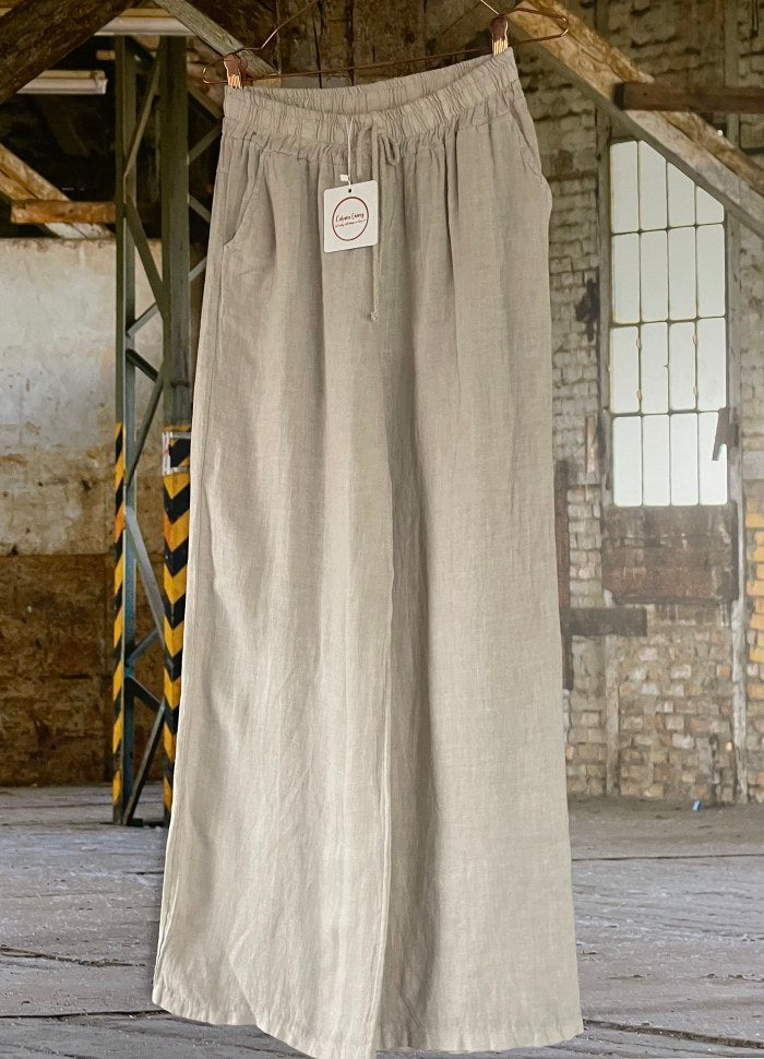 Klassisk lin bukse med strikk i midjen, snøring kun til pynt.