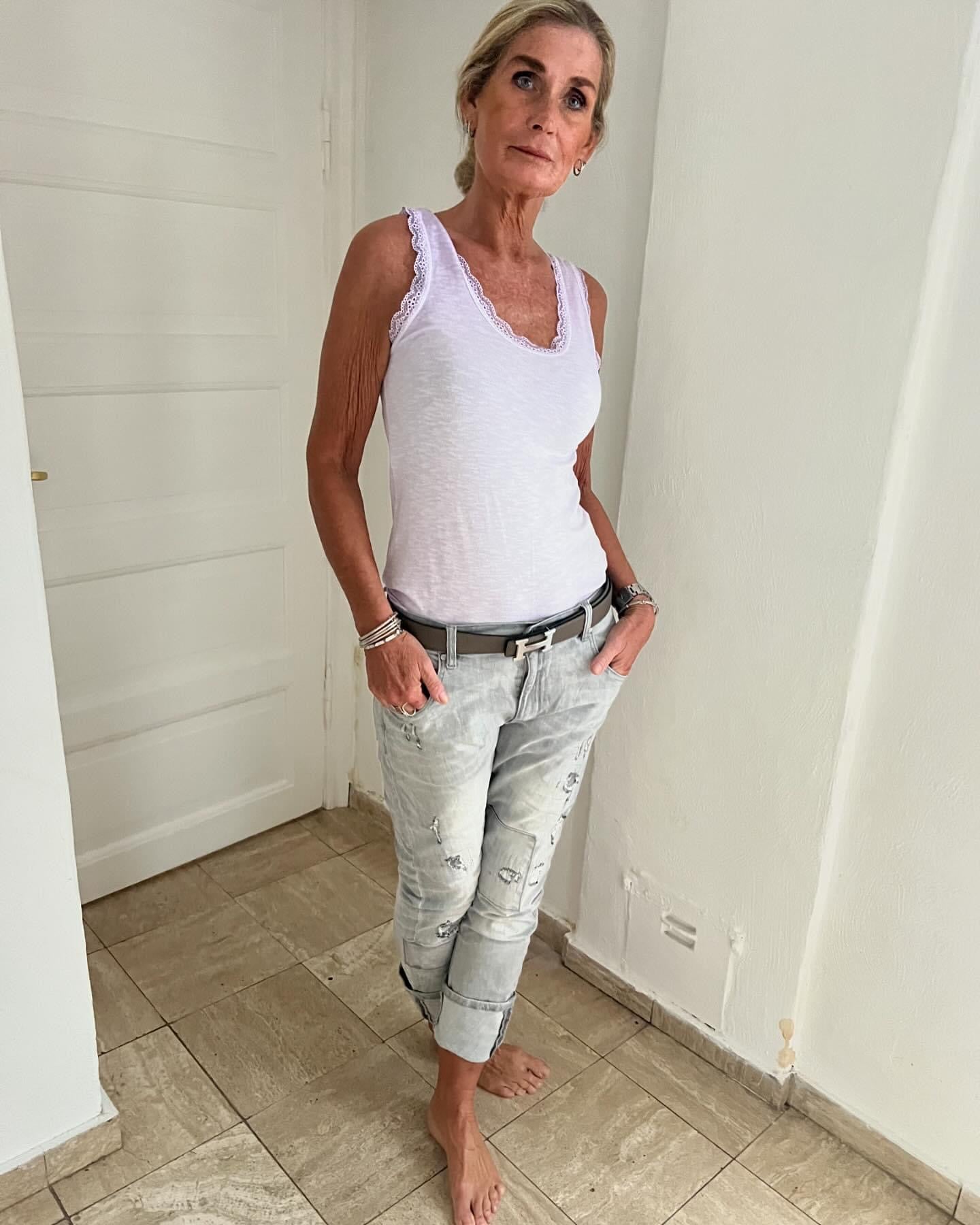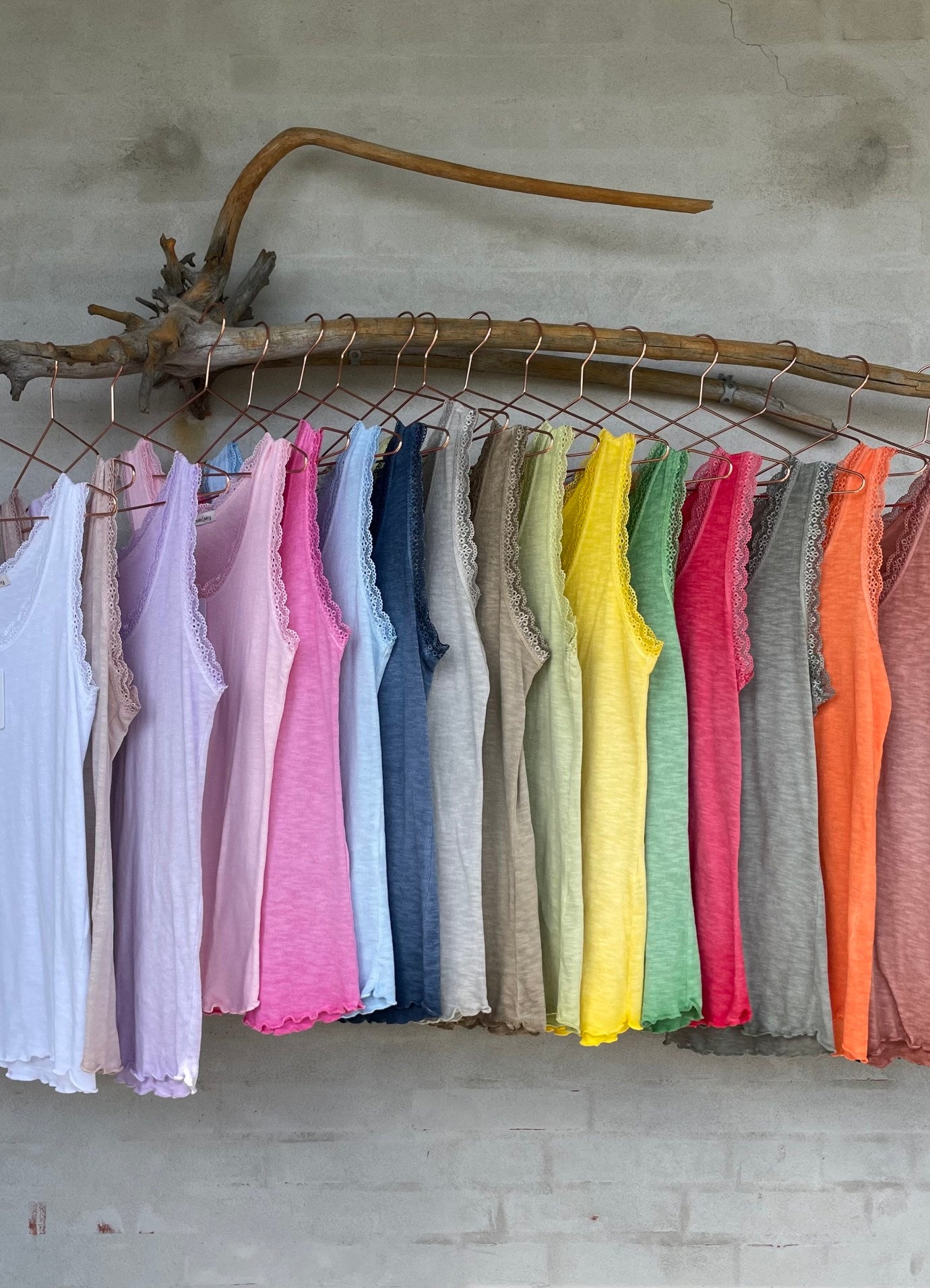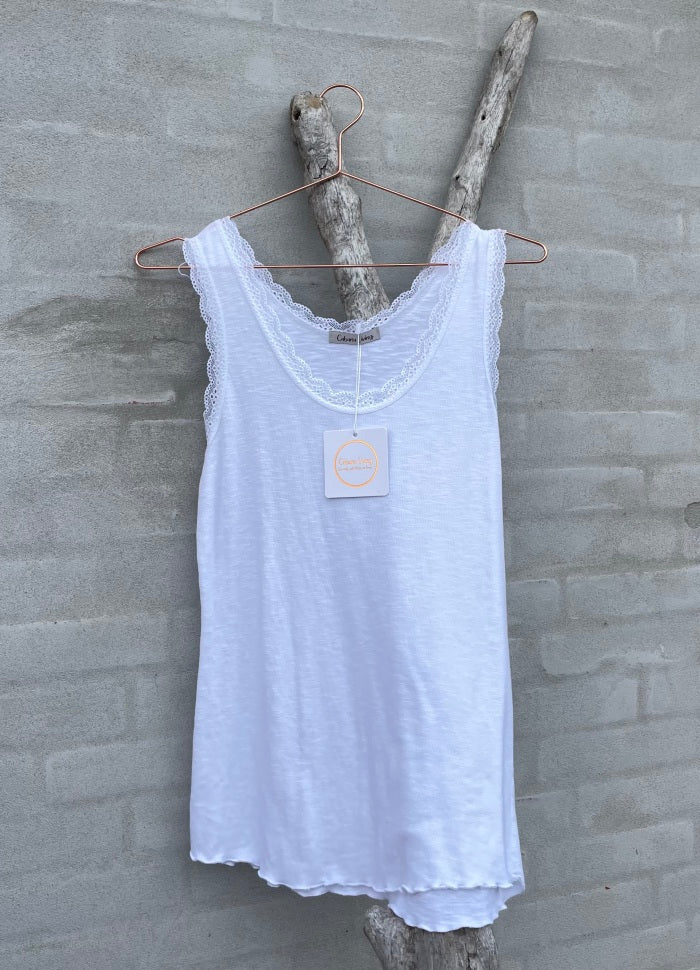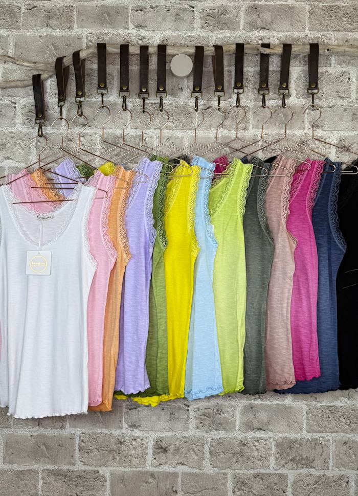 Feminin rib topp med blonde kant i utringningen