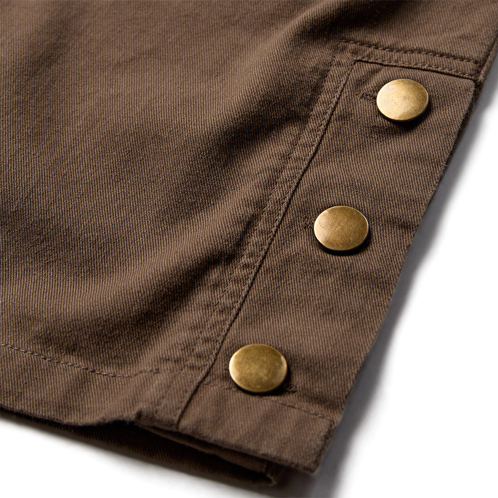 Kult cargo skjørt fra Depeche i en brun-grå farge og 100% bomull! Skjørtet har strikk i livet, rett passform og stopper over kneet. Skjørtet er designet med en elegant knapperekke i gull nederst på den ene siden av skjørtet, noe som gir det et litt mer edgy og kul look!