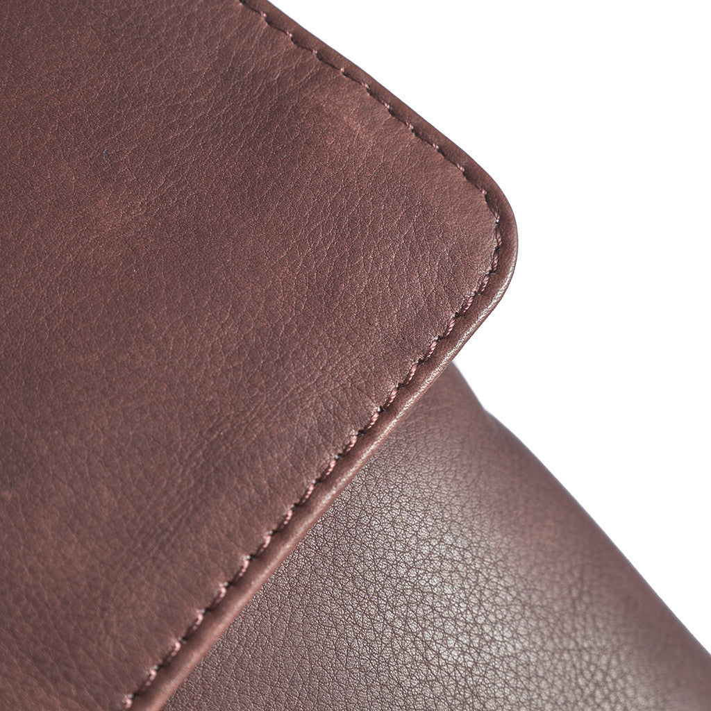 Vesken er i 100% skinn og måler følgende: H: 18 x W: 15 x D: 2 cm