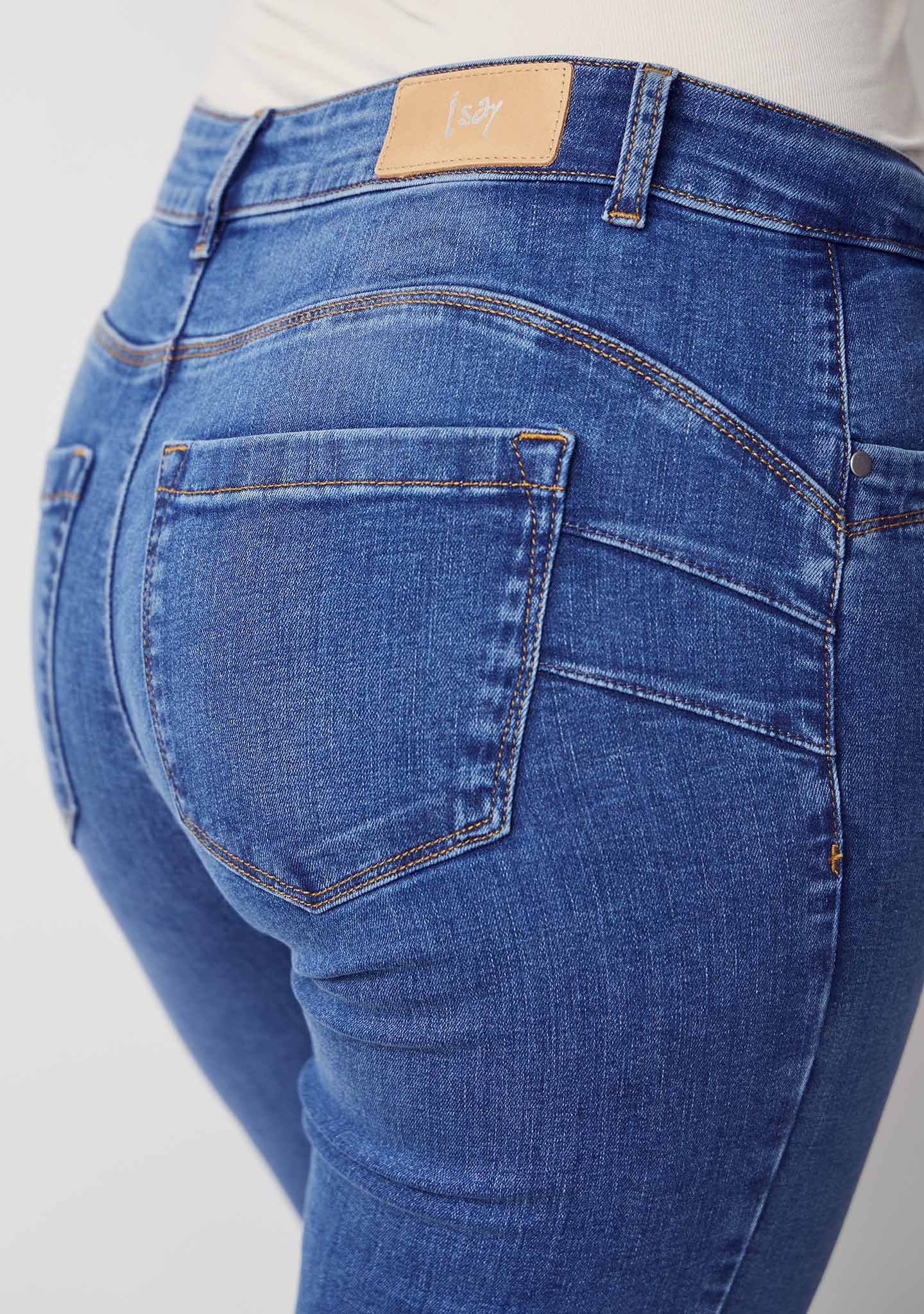 En statement bukse for dem som elsker en feminin og skreddersydd jeanslook med litt edge. Buksen har en mørk vask som gir den et sofistikert utseende og som passer til ethvert antrekk. Buksen har god stretch og medium-høye liv er dette en super komfortabel bukse du kan bruke hele dagen.