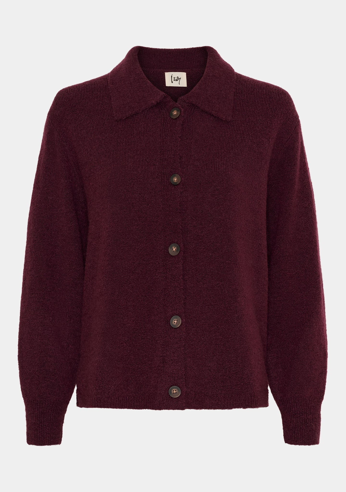 En god grunnleggende cardigan er nødvendig i alle garderober, og vår Anna Colar cardigan er intet unntak. Cardiganen har knapper hele veien ned og en avslappet passform med senkede skuldre. Anna Colar cardiganen er en stilig og kort cardigan som passer perfekt over en kjole. Den har en elegant polokrave, ballongermer og er avsluttet med ribbkanter.