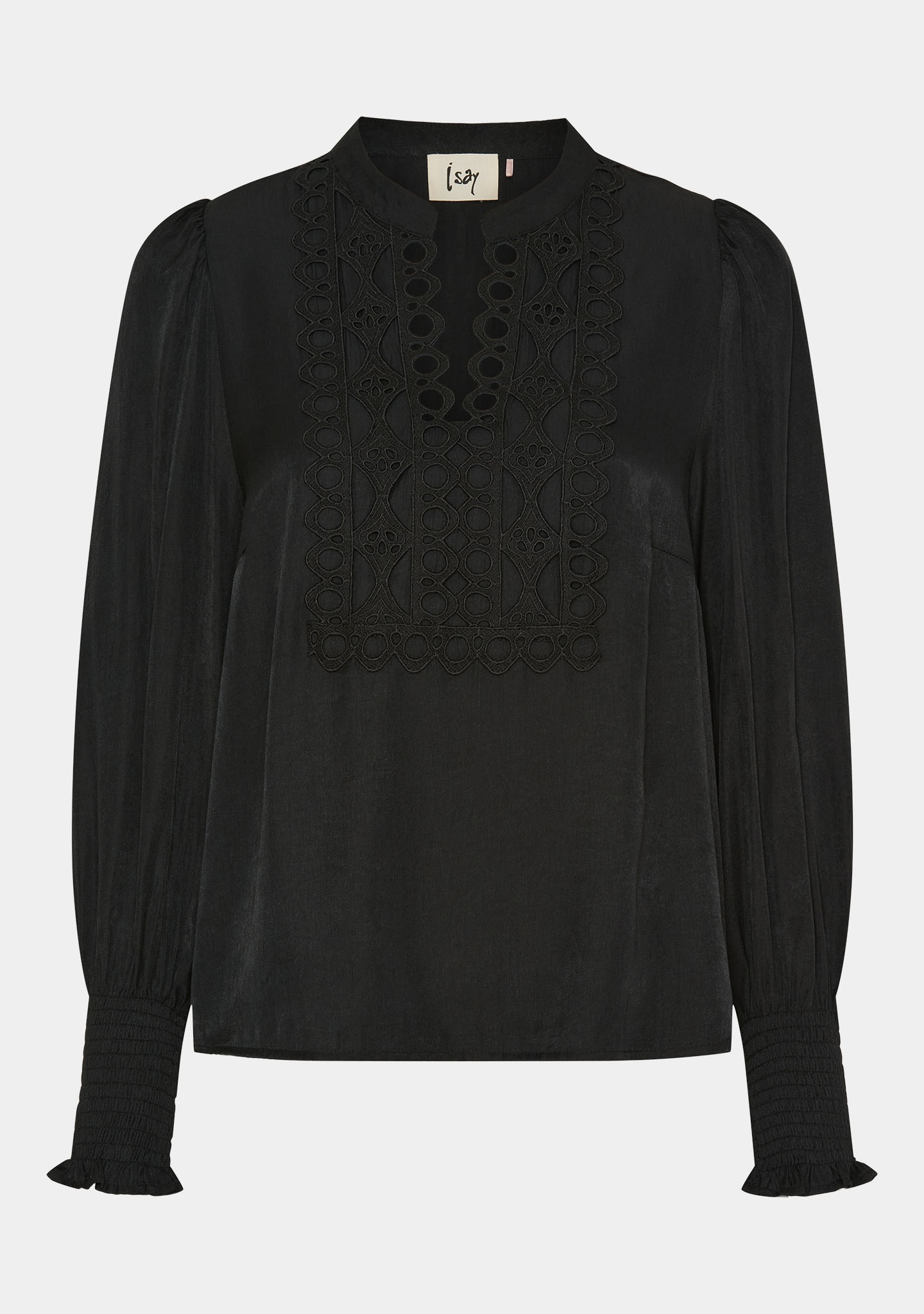 Emily Bluse er en vakker og feminin bluse som utstråler et veldig elegant uttrykk. Den er designet med delikate broderi anglaise detaljer som tilfører et snev av ynde til blusens uttrykk. Med lange ermer, avsluttet med rynkekant, og en behagelig passform er Emily Bluse en glede å ha på hele dagen.