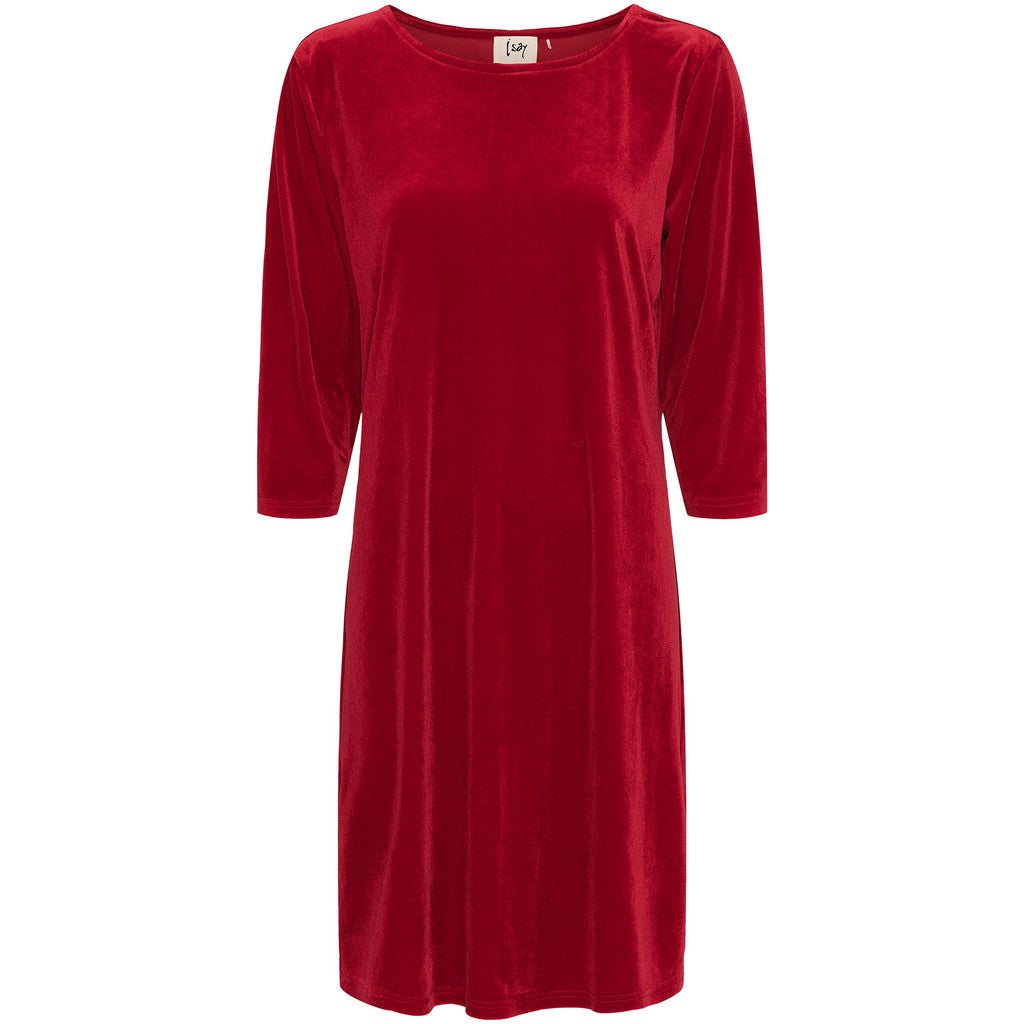 Lekker kjole i velurkvalitet, kjolen har en lett tettsittende silhuett som elegant fremhever kurvene dine, og velur kvaliteten gir kjolen en luksuriøs følelse. Kjolen har en rundt hals og 3/4 lang ermer, kjolen stopper rett over kneet og passer perfekt til festligheter! Kjolen er stretchy i stoffet.
