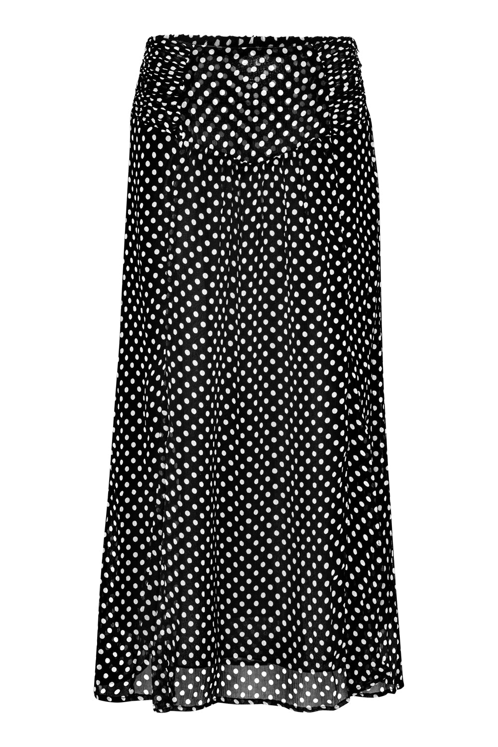 Lekkert, flowy polka skjørt fra Moliin. Skjørtet har strikk i livet og er laget i 100% viskose, noe som gir det en eksklusiv look.