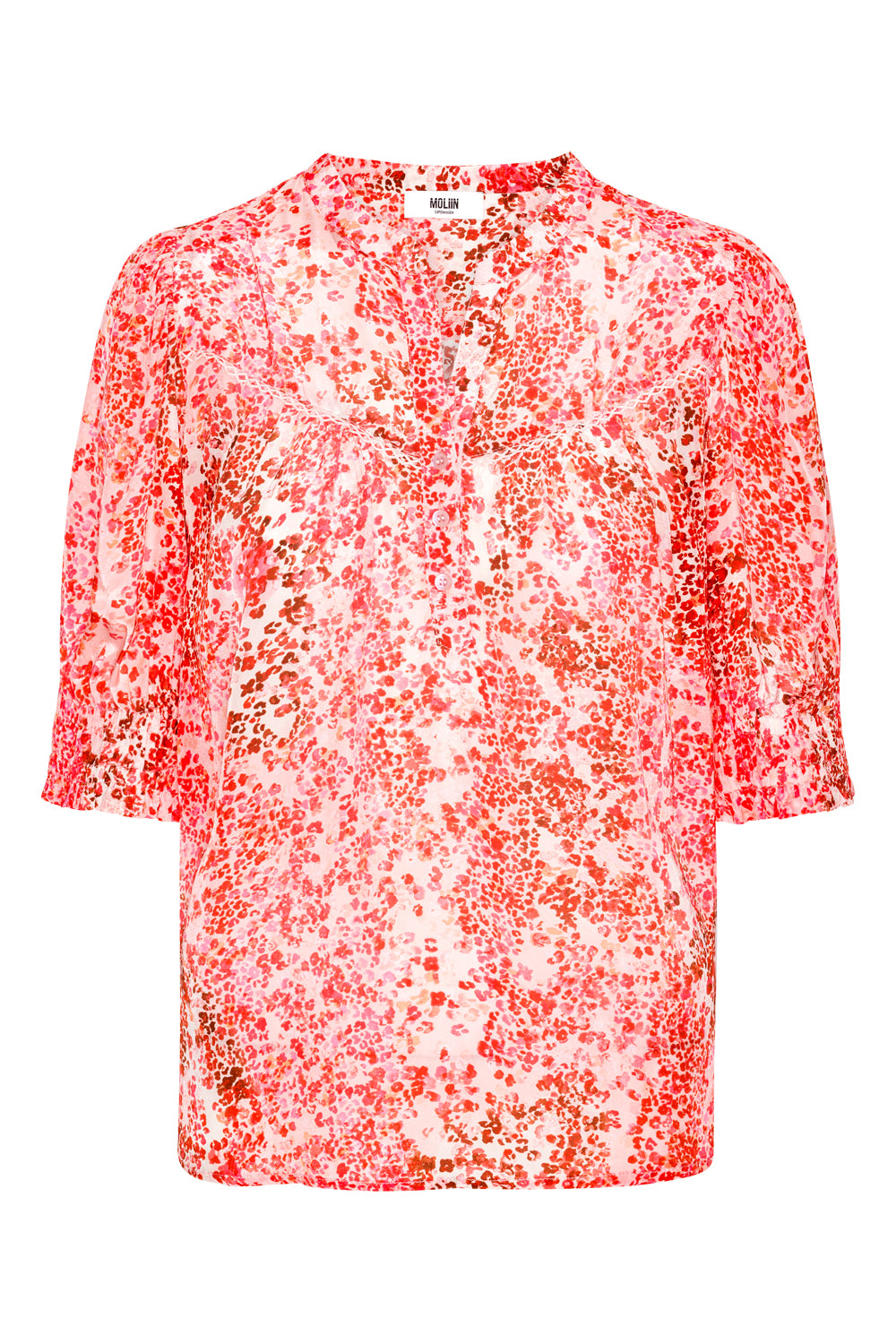 Feminin kortermet bluse med rund hals. Blusen har små broderte detaljer og et nydelig, fresht blomsterprint. Blusen er laget i 100% viskose.