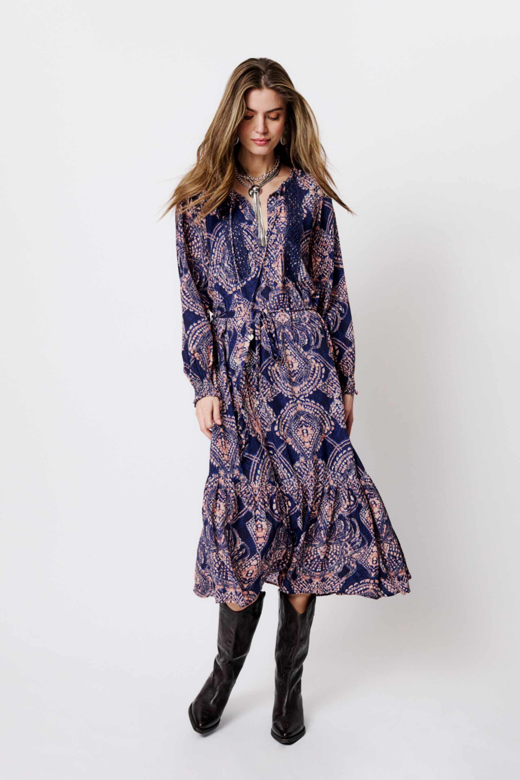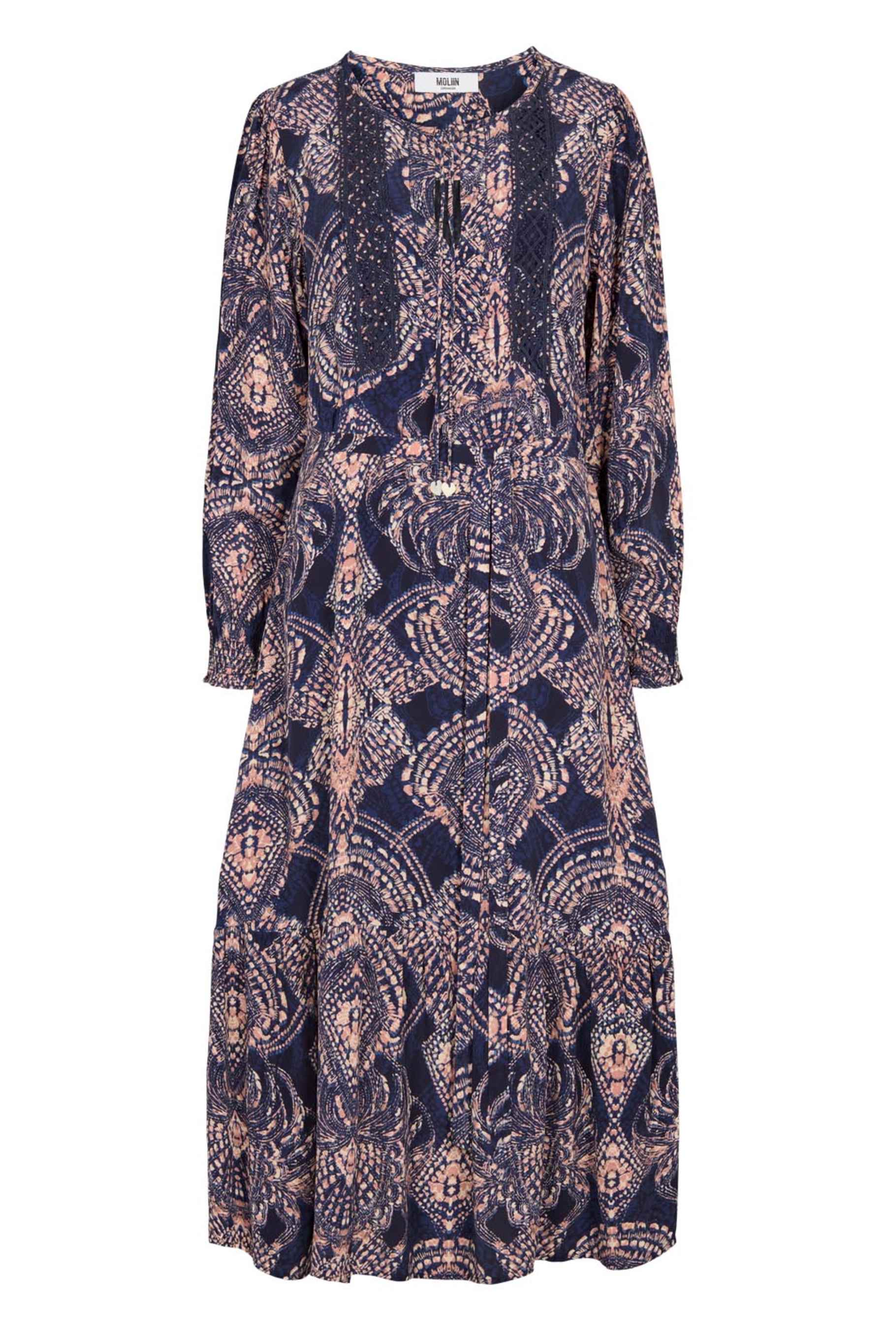 Lekker kjole fra Moliin i blå- og rosatoner. Kjolen er laget i 100% viskose.