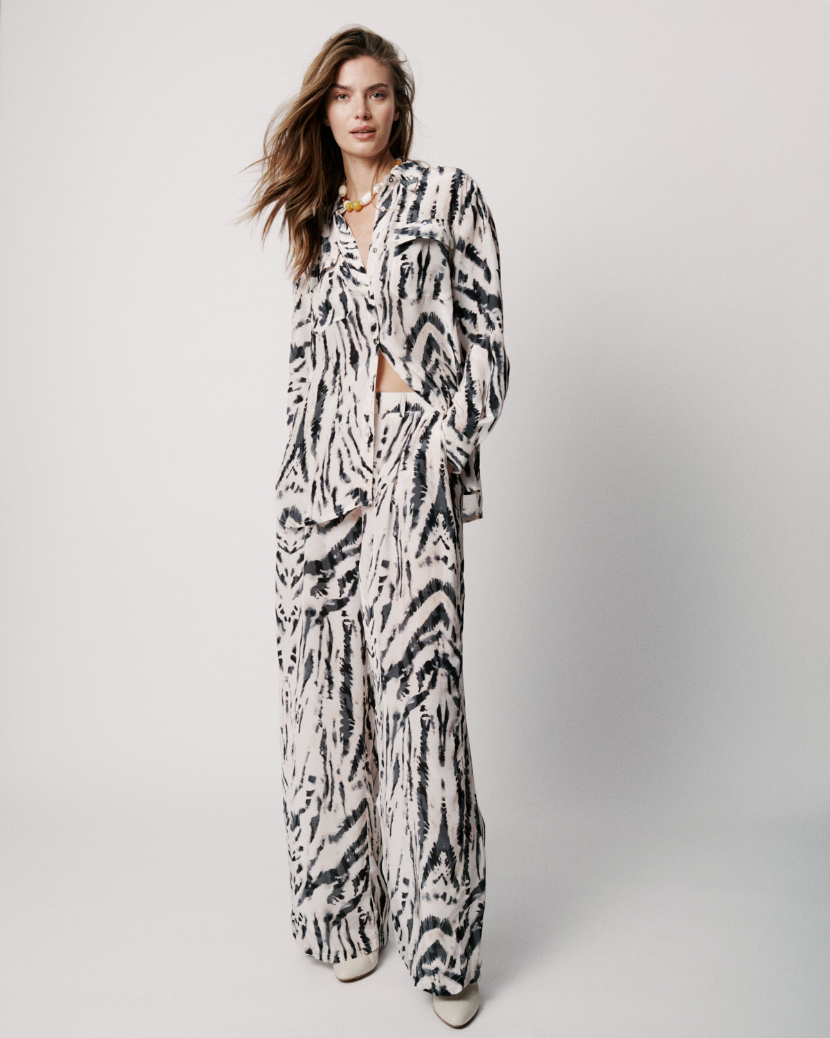 Kul skjorte i 100% viskose. Skjorten har to lommer i front og knapper hele veien foran. Ermene er rette.