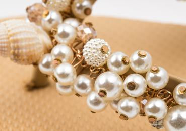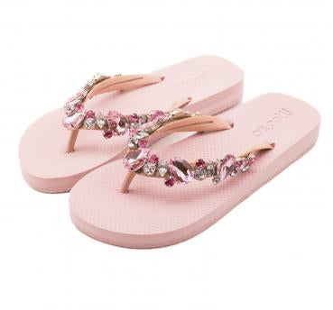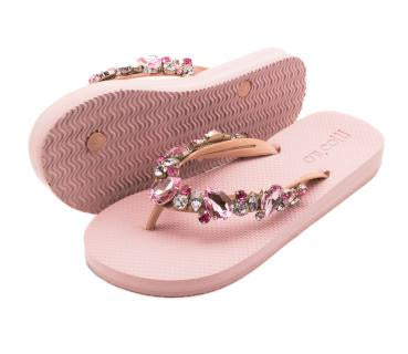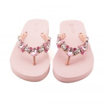 Lekre Flip Flops sandaler med stener og perler som pynter opp føttene. Kombinasjonen av edelstener i forskjellige former, farger og teksturer gir denne skoen et mer enn stilig design. Eksklusive og utvalgte enkeltdeler behandles kjærlig og ekstremt krevende for hånd - dette betyr at nesten hver sko er unik.