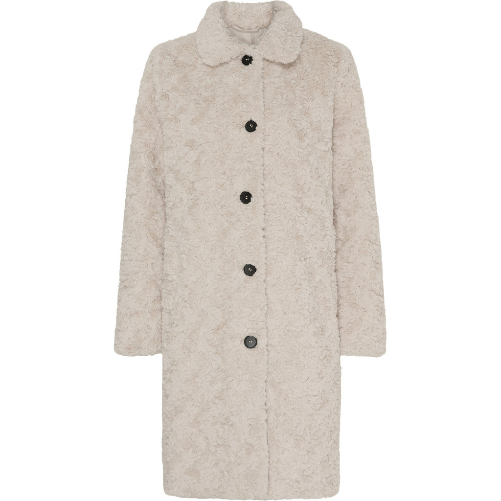 Trendy lang jakke i fake pels, designet med en klassisk krave og sidelommer. Jakken lukkes med knapper ned foran. Uansett om du ønsker at tilføje et rått touch til dine outfits eller fremheve en feminin stil, er denne jakken det ideelle valg.