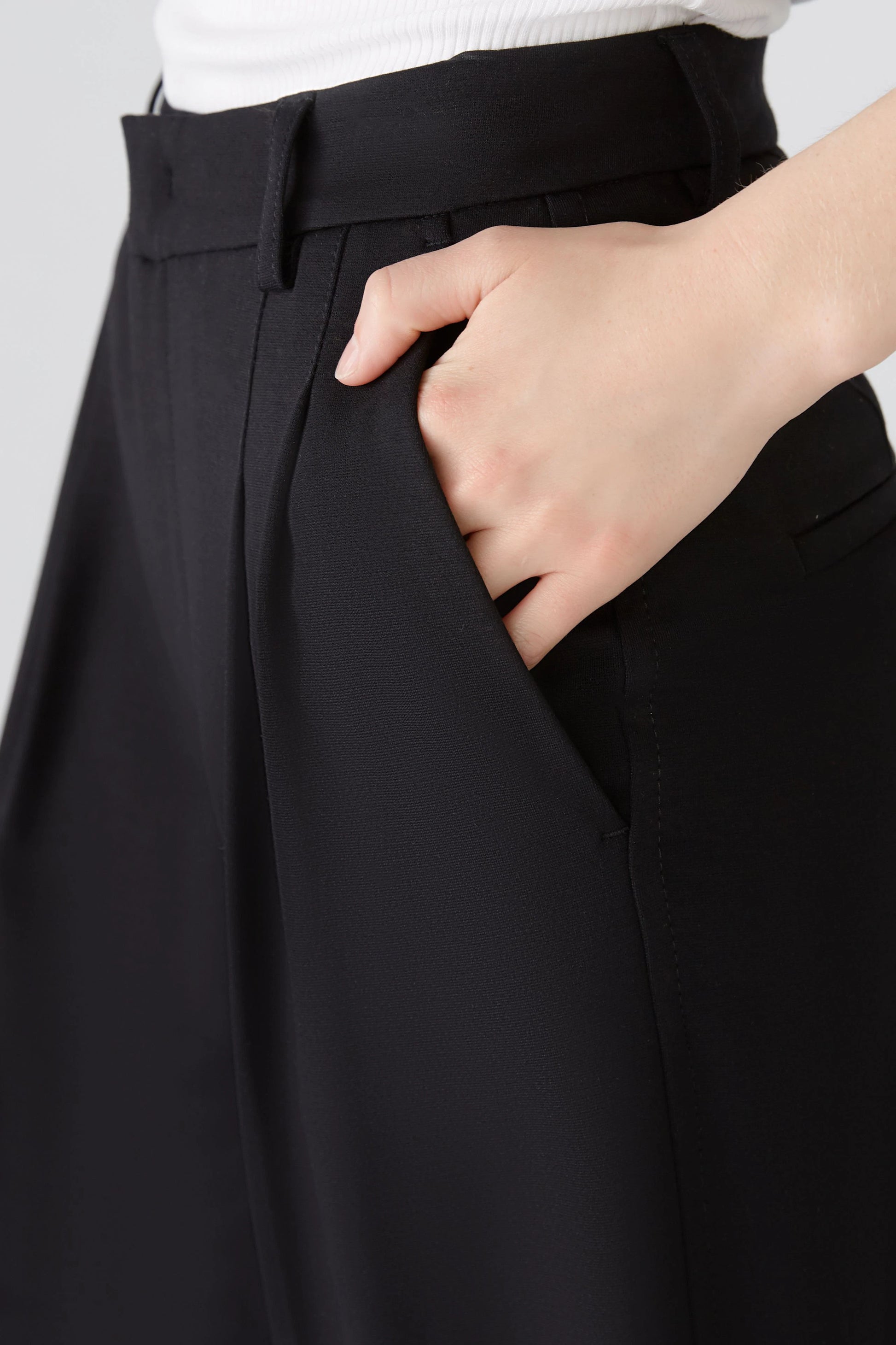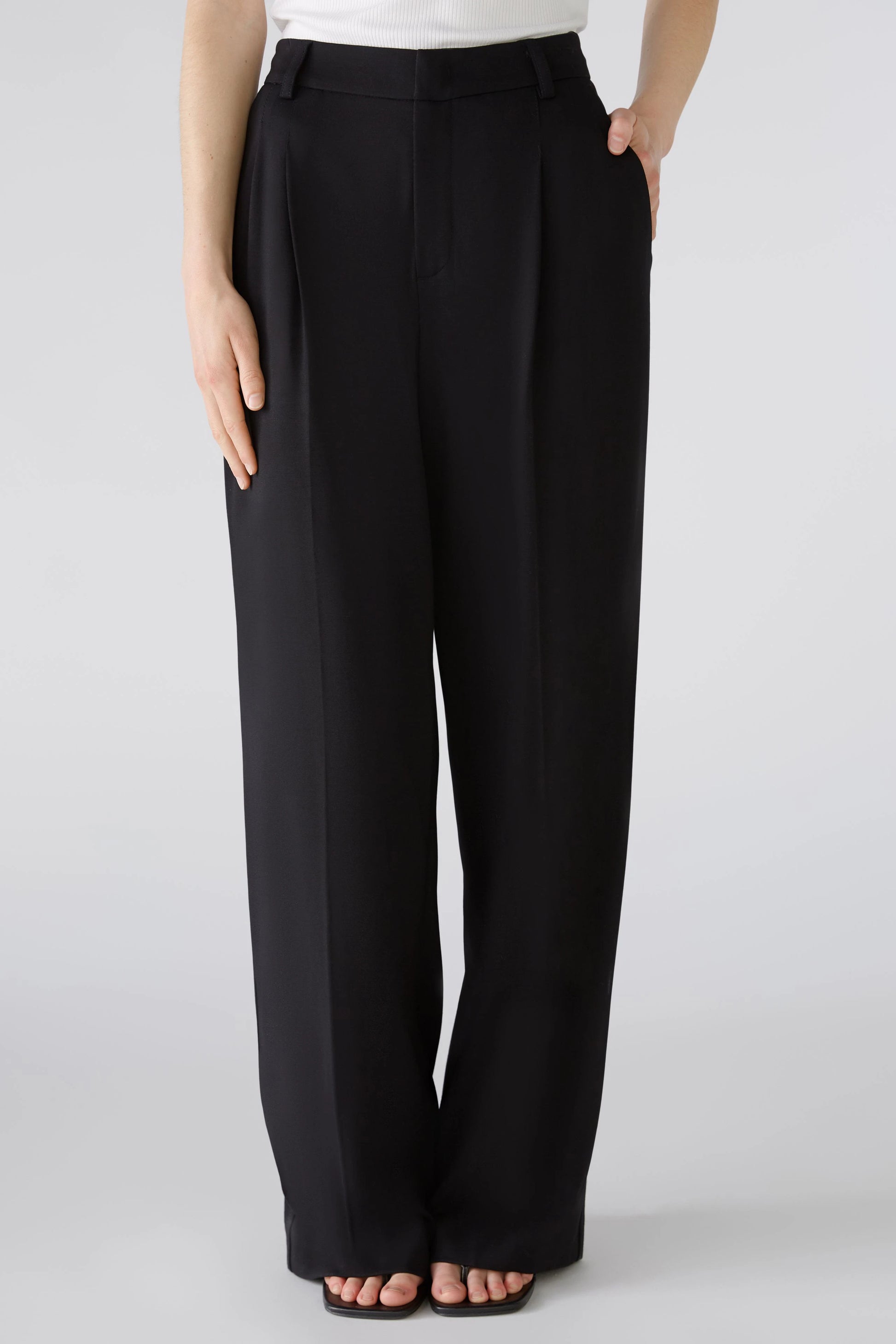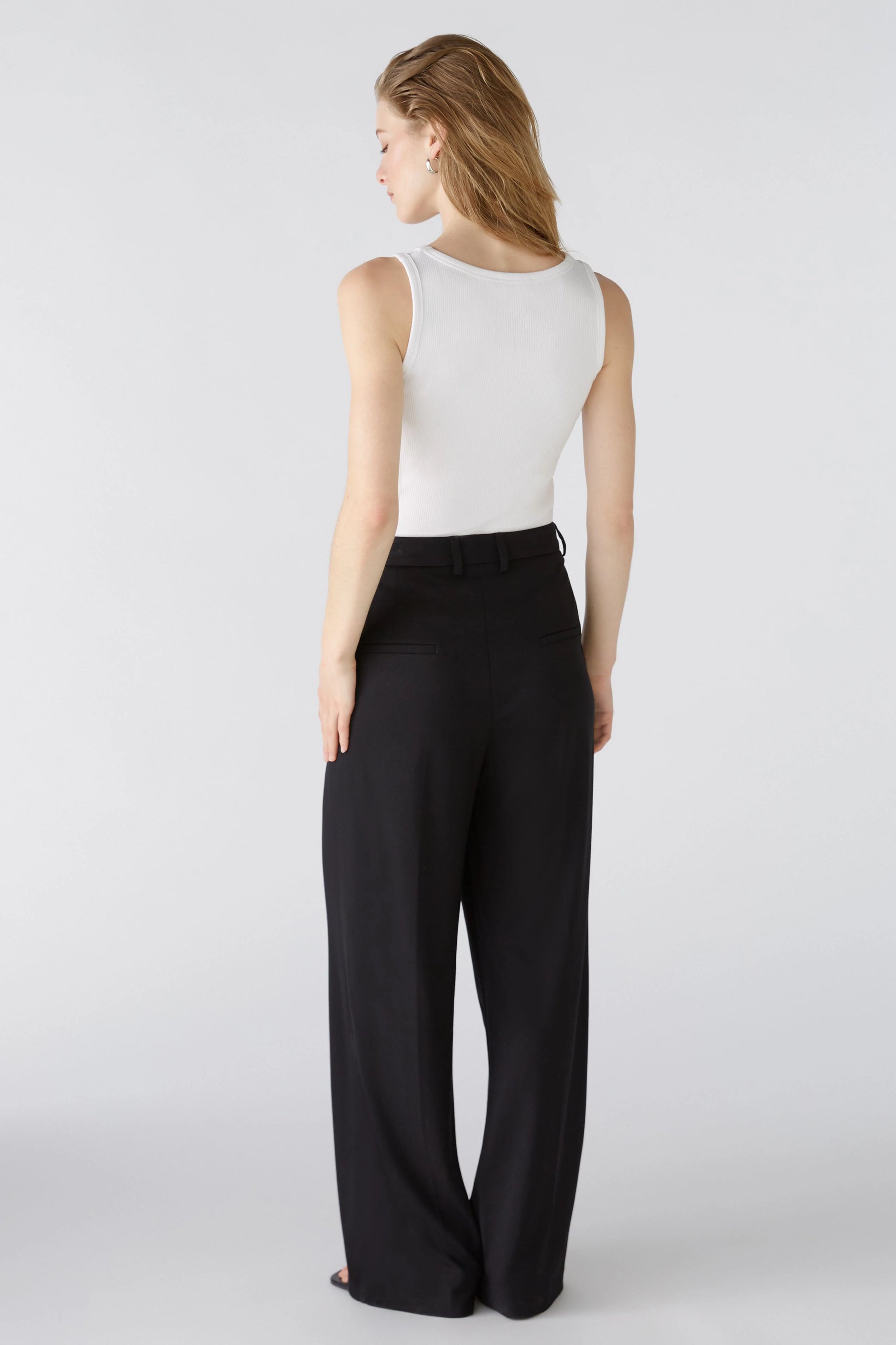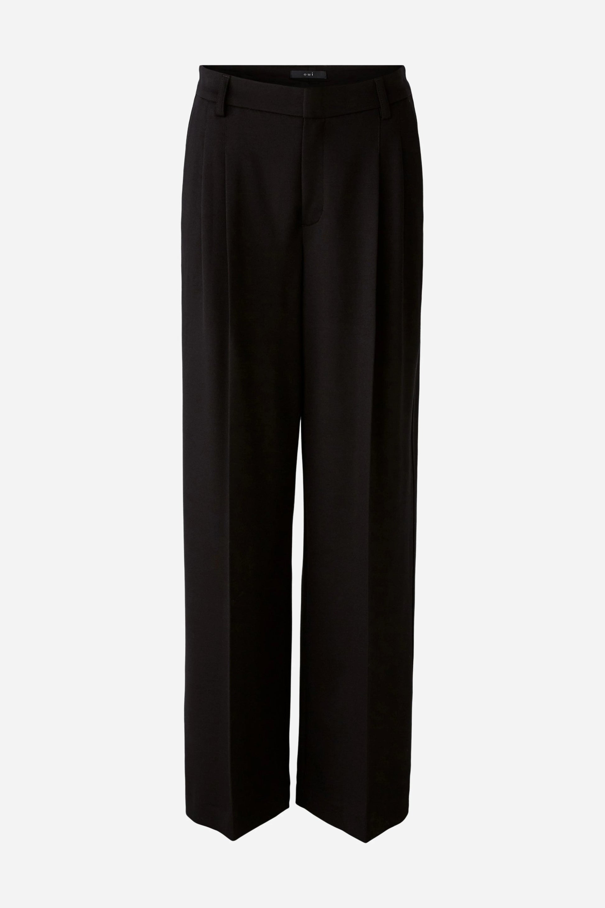 Komfortabel jersey blend med viskose. Buksen har et klassisk høyt liv med beltehoops, knapp og glidelåslukking. Lange ben og en "relaxed fit" - Den henger super flatterende på kroppen.