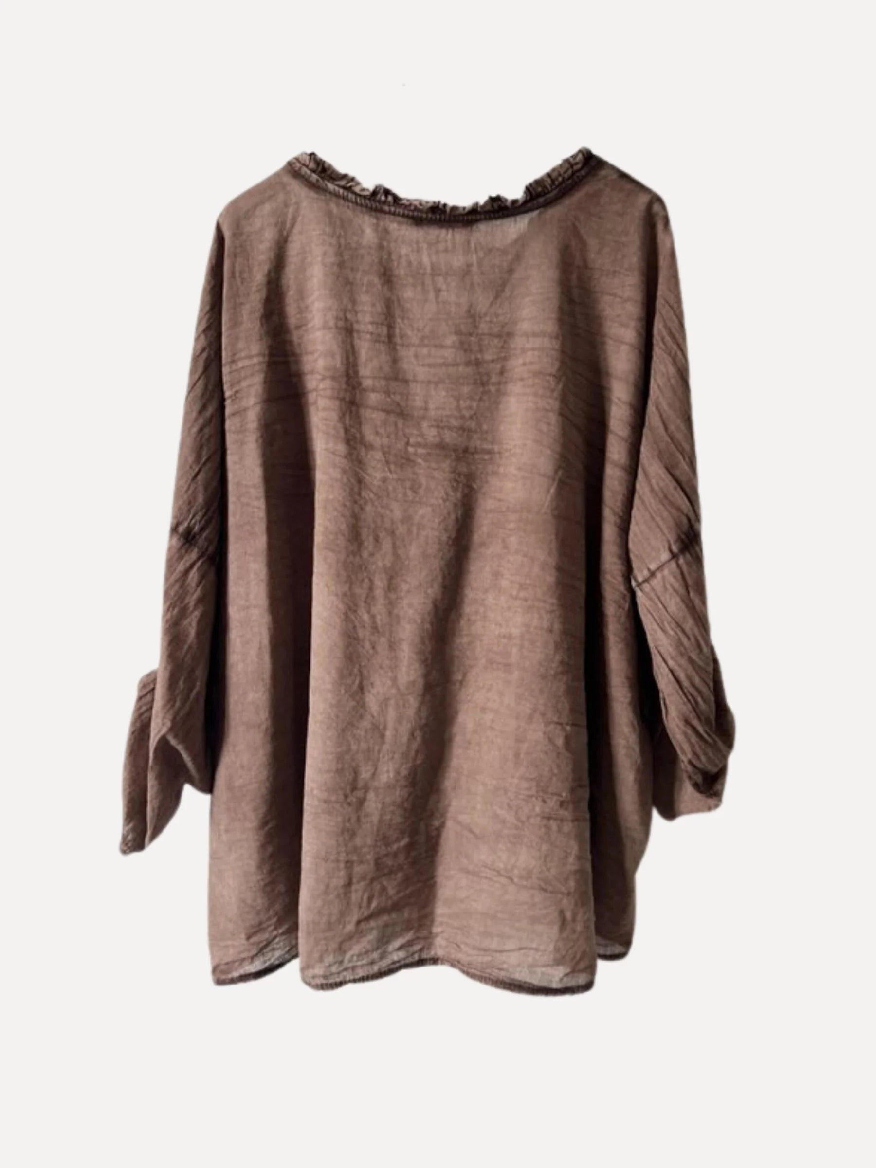 Lekker bomullsbluse fra Reunion med lekre rysjer i front - denne høstens super trend!